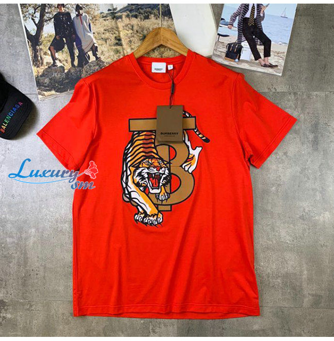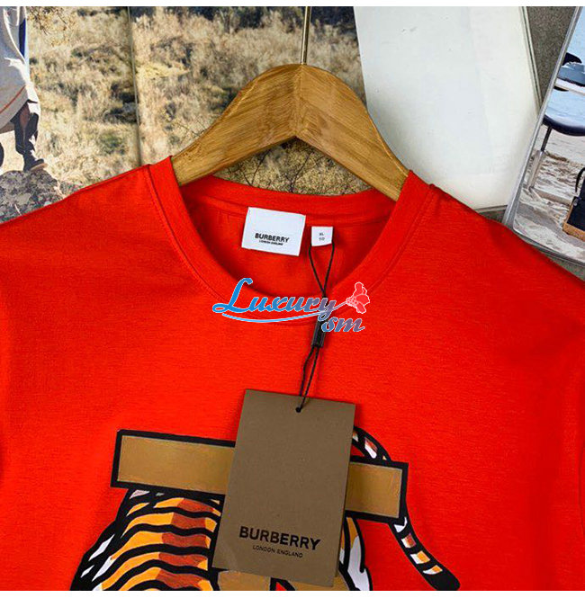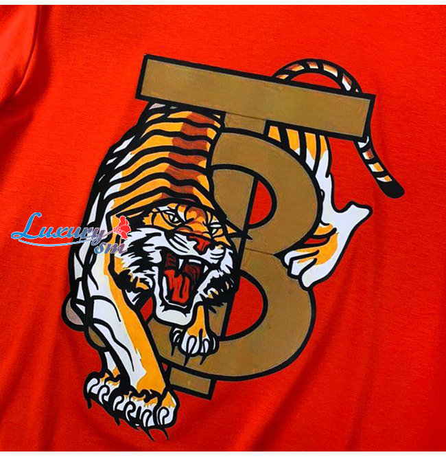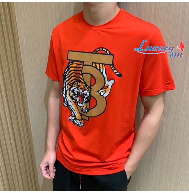 BURBER**-031519 버버리 오렌지 타이거 프린트 장식 티셔츠 남성용