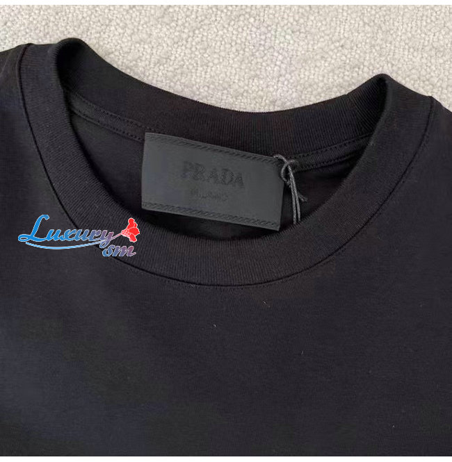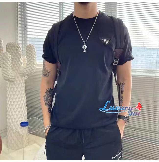 PRAD*-03197 프라다 블랙 코튼 티셔츠 남성용