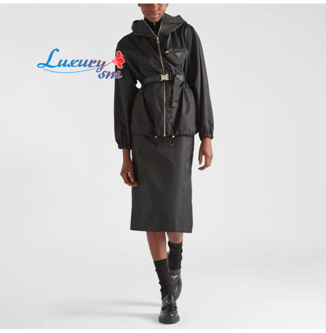 PRAD*-291964 프라다 블랙 리나일론 바람막이 후드 블루종 재킷