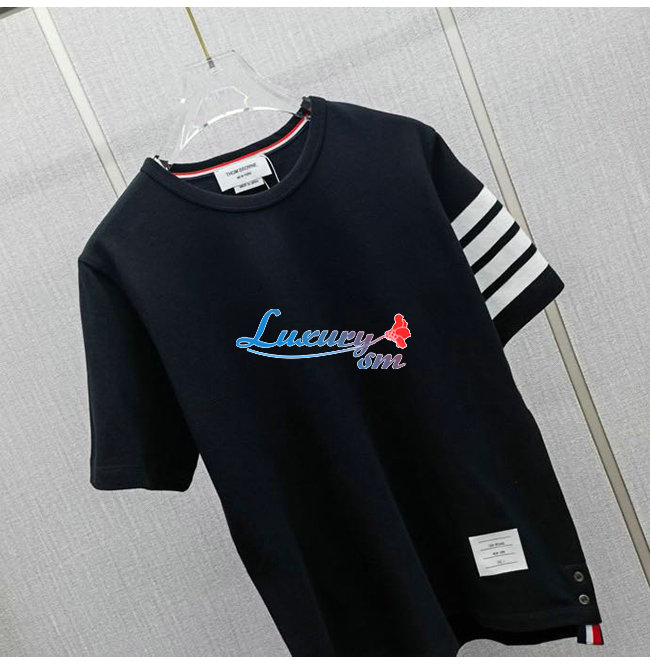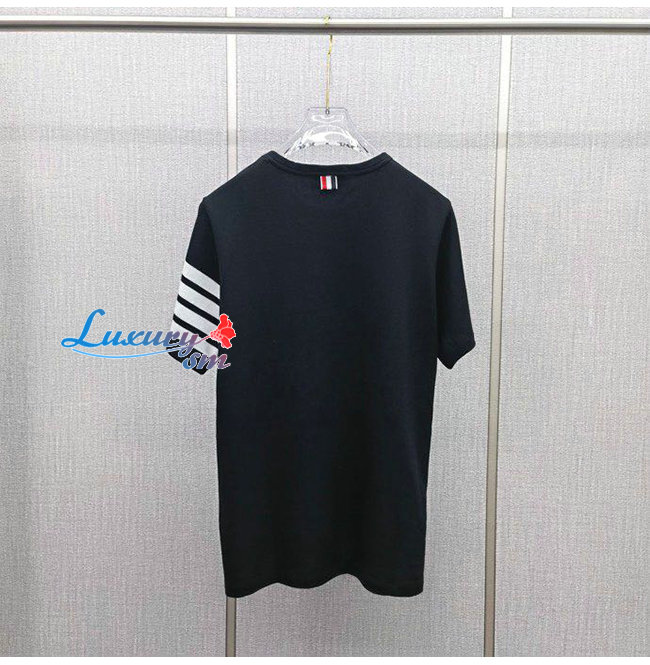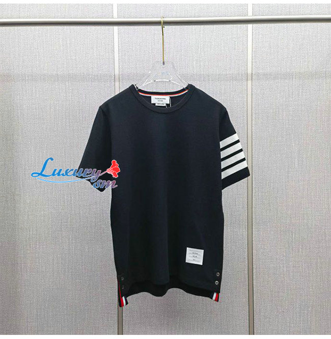 THOM BROW**-04014 톰 브라운 네이비컬러 스트라이프 장식 티셔츠 남성용(스판잇는 원단임)