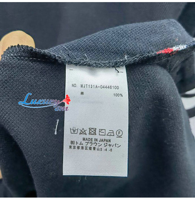 THOM BROW**-04011 톰 브라운 네이비 스트라이프 장식 티셔츠 남성용