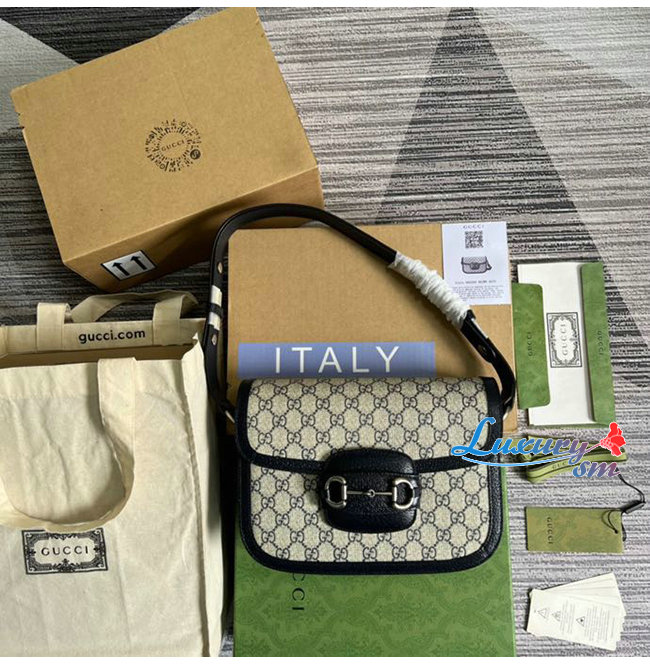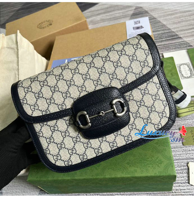 [스페셜오더]GUCC*-602204 4075 구찌 베이지/블루 구찌 홀스빗 1955 스몰 핸드백