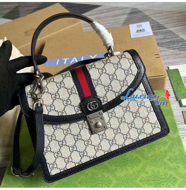 [스페셜오더]GUCC*-651055 4076 구찌 오피디아 베이지/블루 스몰 GG 탑 핸들백