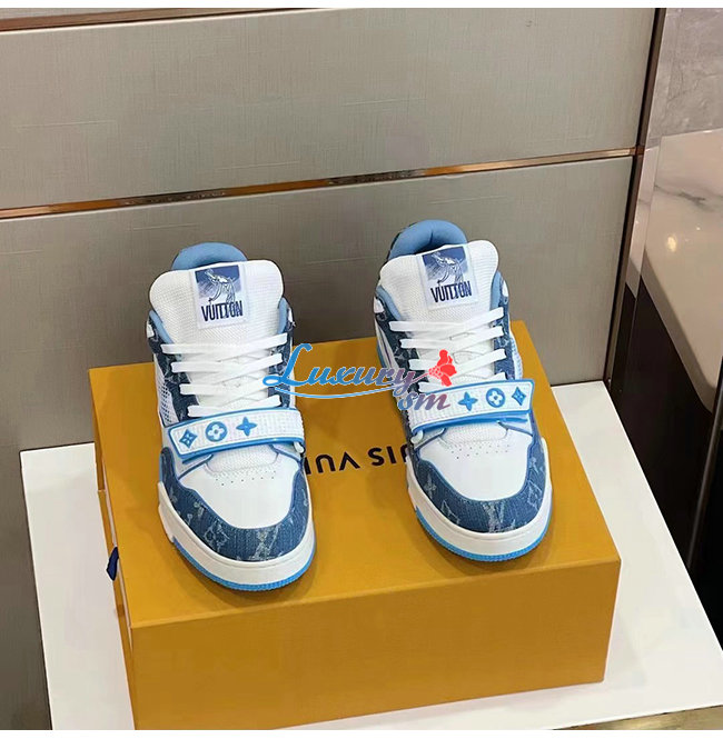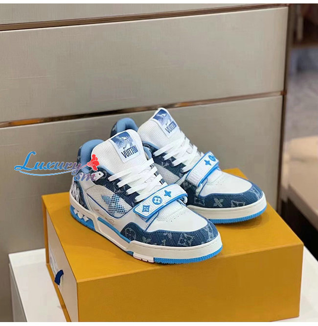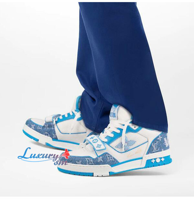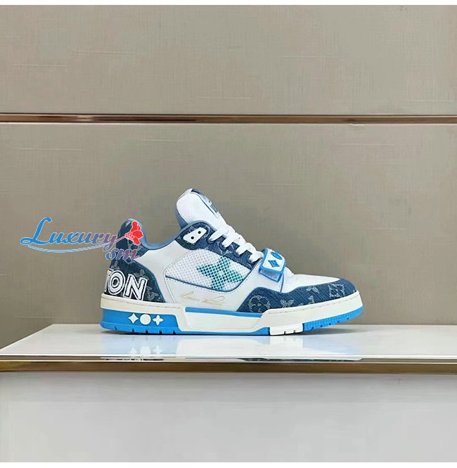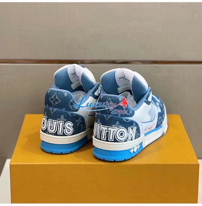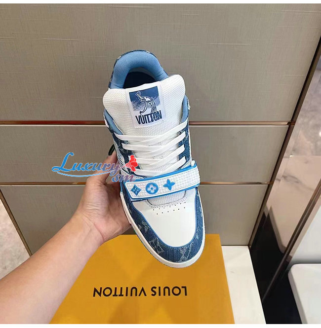 LOUIS VUITT**-1A9ZIE 루이비통 블루 모노그램 데님 LV 트레이너 스니커즈