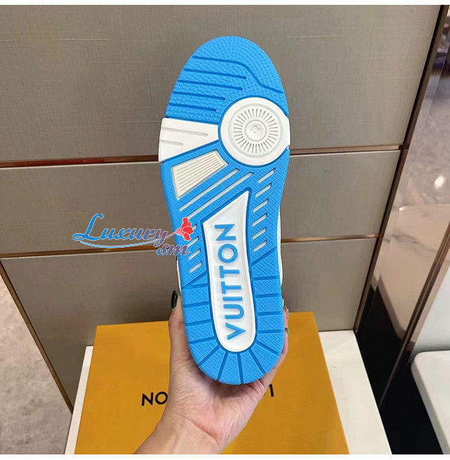 LOUIS VUITTON-1A8ZT4 루이비통 화이트/블루 송아지 가죽 LV 트레이너 스니커즈