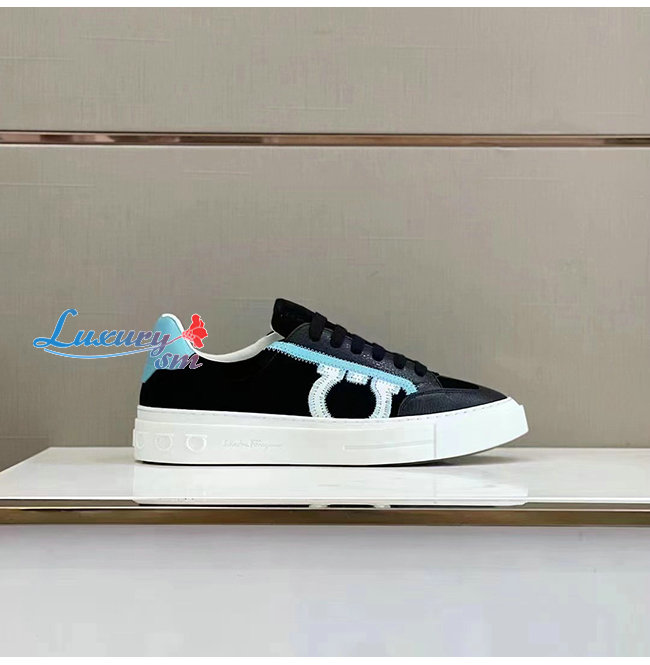 Ferraga**-02B726 페라가모 블랙 스웨이드 간치니 스니커즈