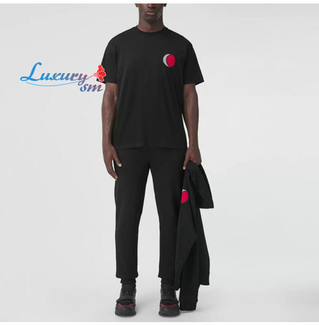 BURBER**-80455021 버버리 블랙 배지 아플리케 티셔츠