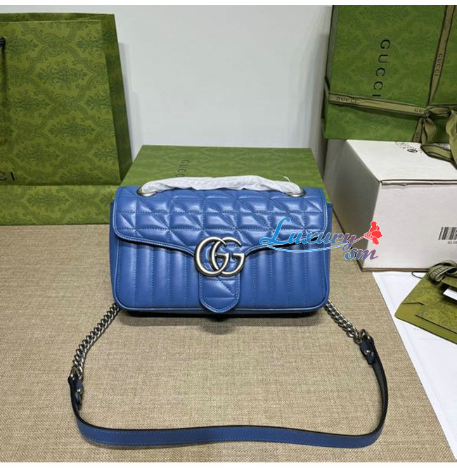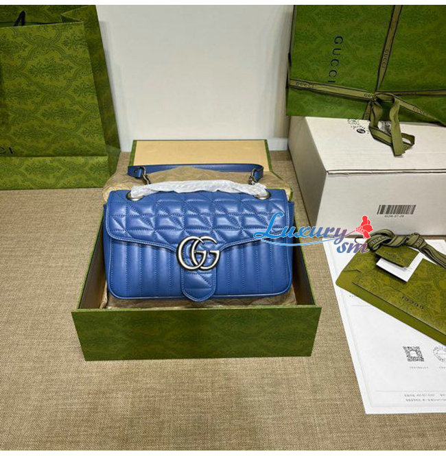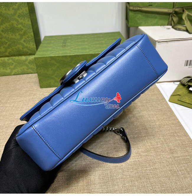 [스페셜오더]GUCCI-443497 4340 구찌 GG 마몽 블루 가죽 스몰 숄더백