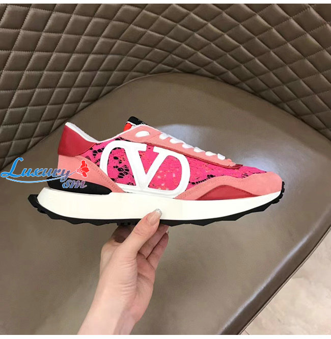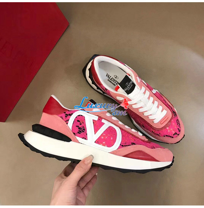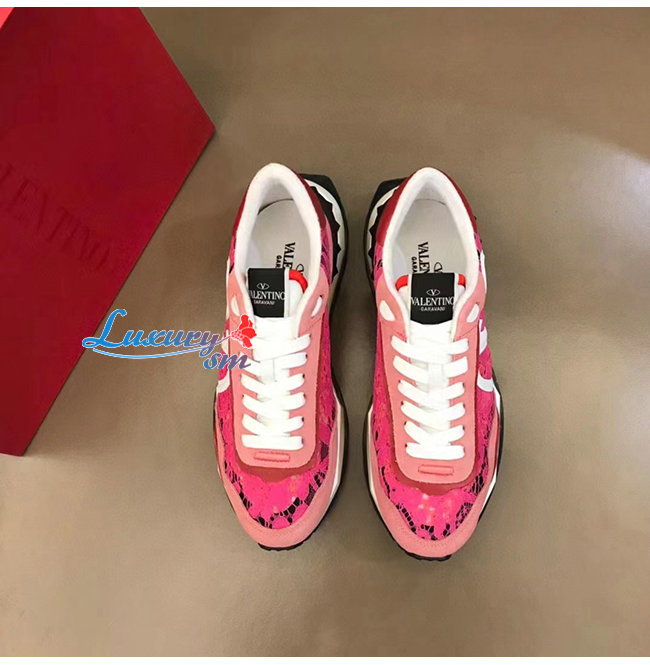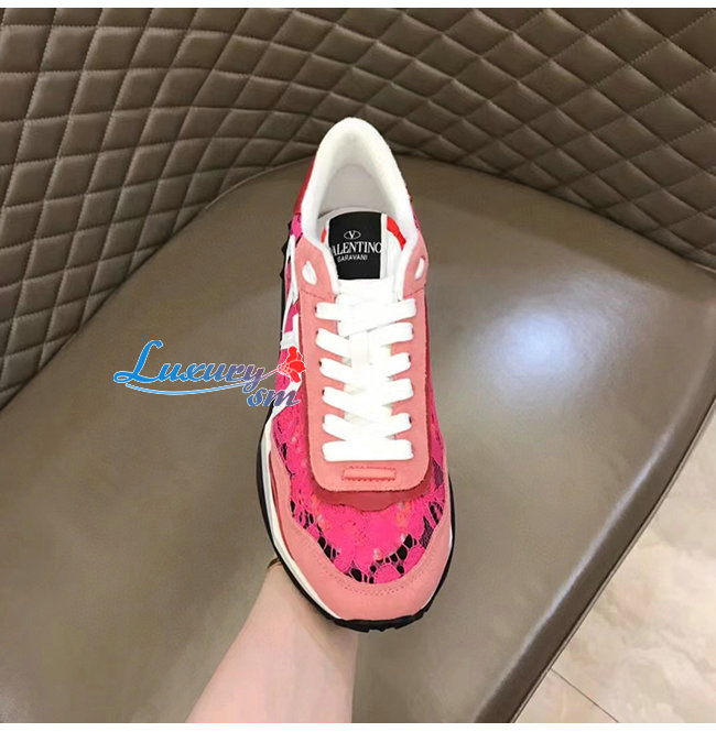 VALENTI**-XW2S0DY 발렌티노 핑크 레이스 메쉬 레이스러너 스니커즈 남여공용