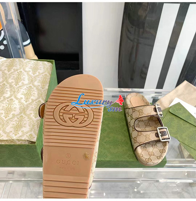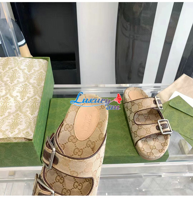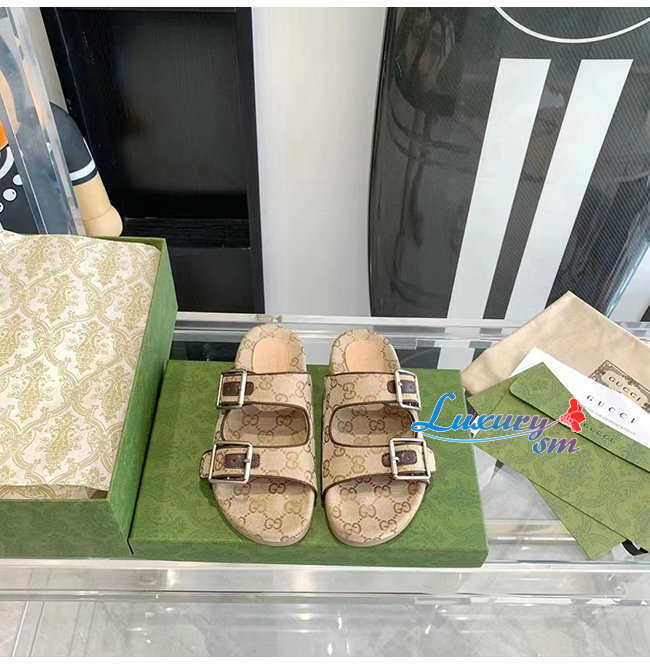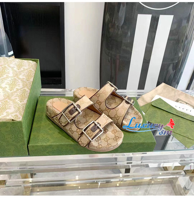 GUCC*-658020 9791 구찌 베이지 스트랩 슬라이드 샌들