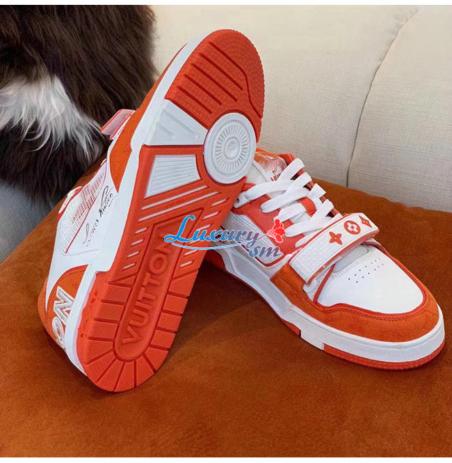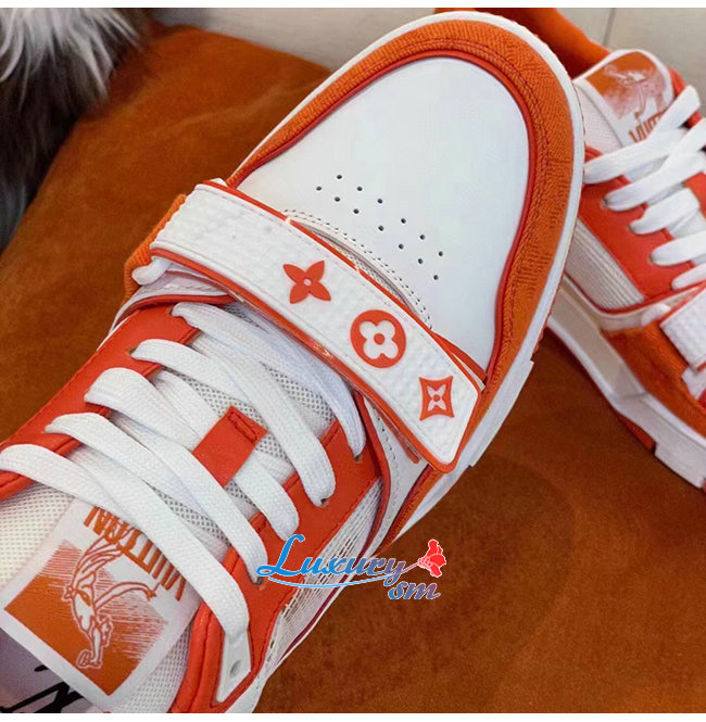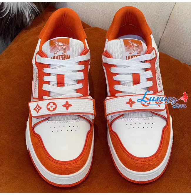 [스페셜오더]LOUIS VUITTON-1A811H 루이비통 오렌지 모노그램 엠보스드 그레인 송아지 가죽 LV 트레이너 스니커즈