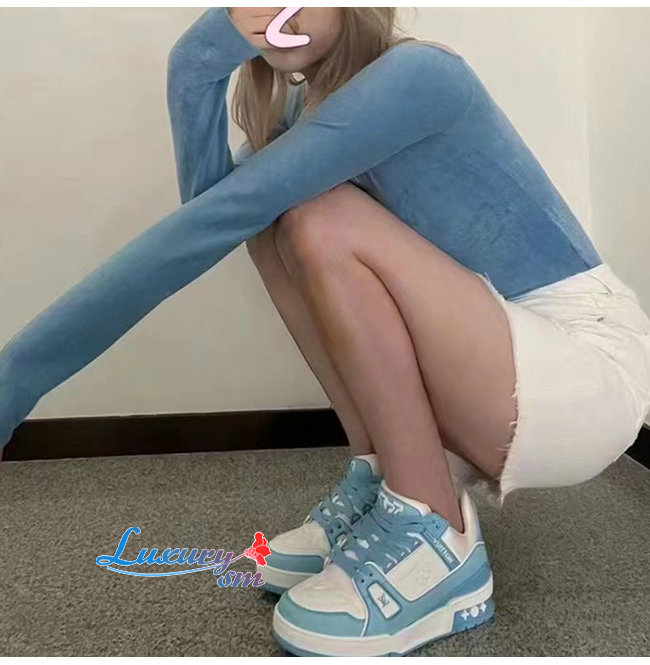 LOUIS VUITT**-1AA6WX 루이비통 라이트 블루 LV 트레이너 스니커즈 남여공용