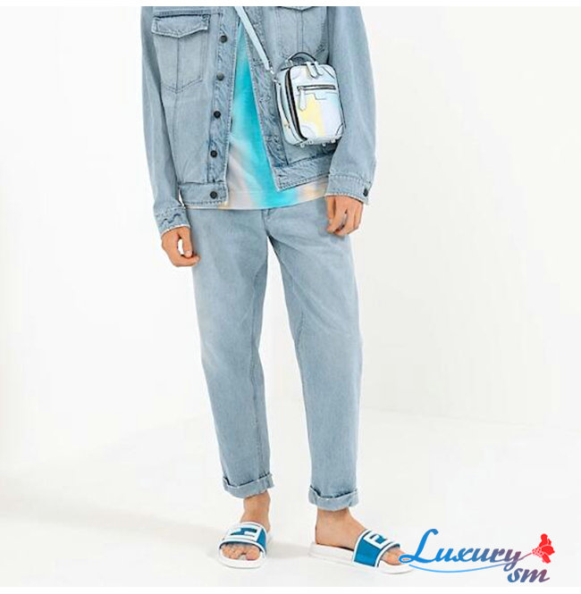 FEND*-7X1522 펜디 라이트 블루 바게트 슬라이드 남성용