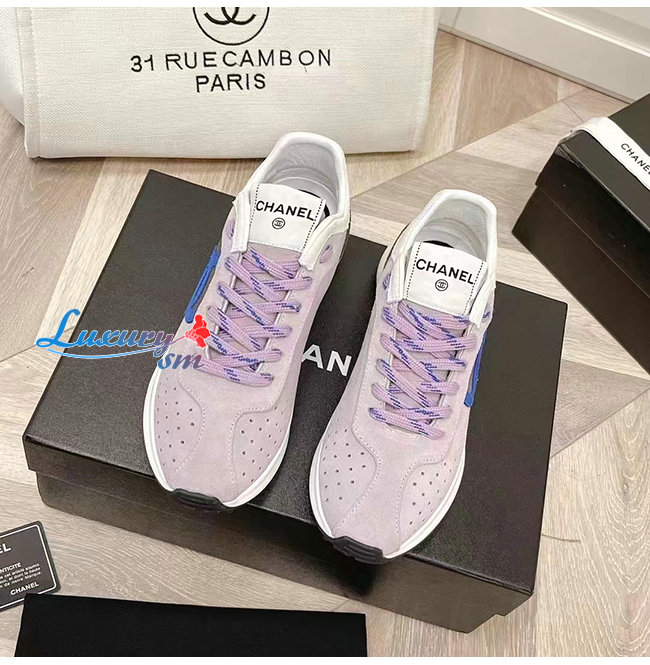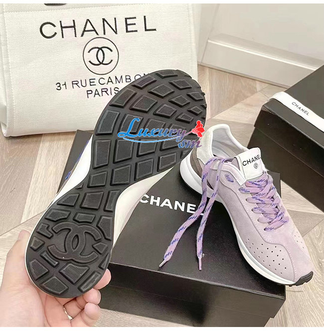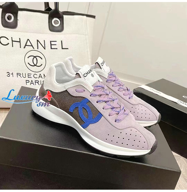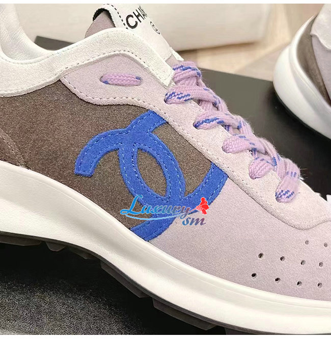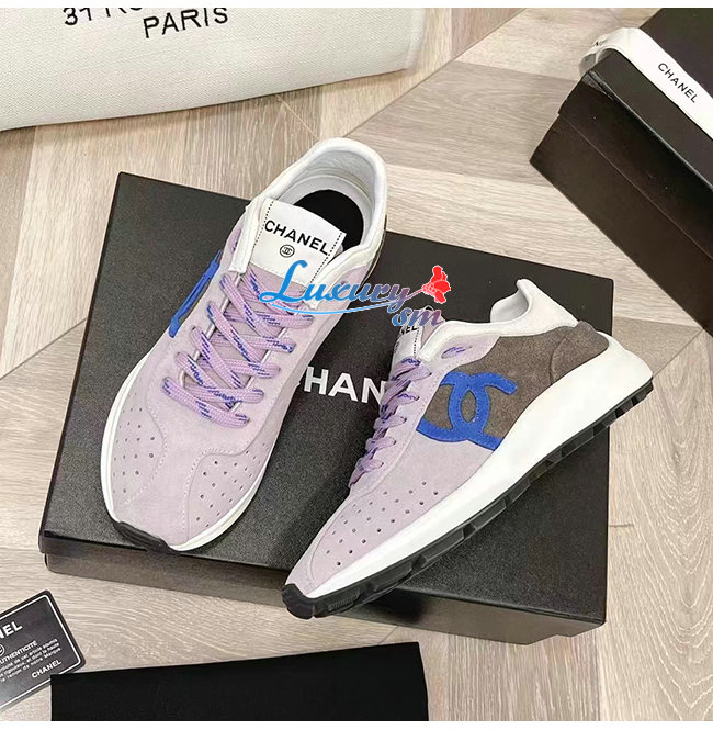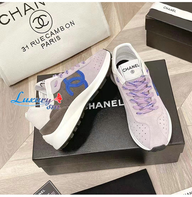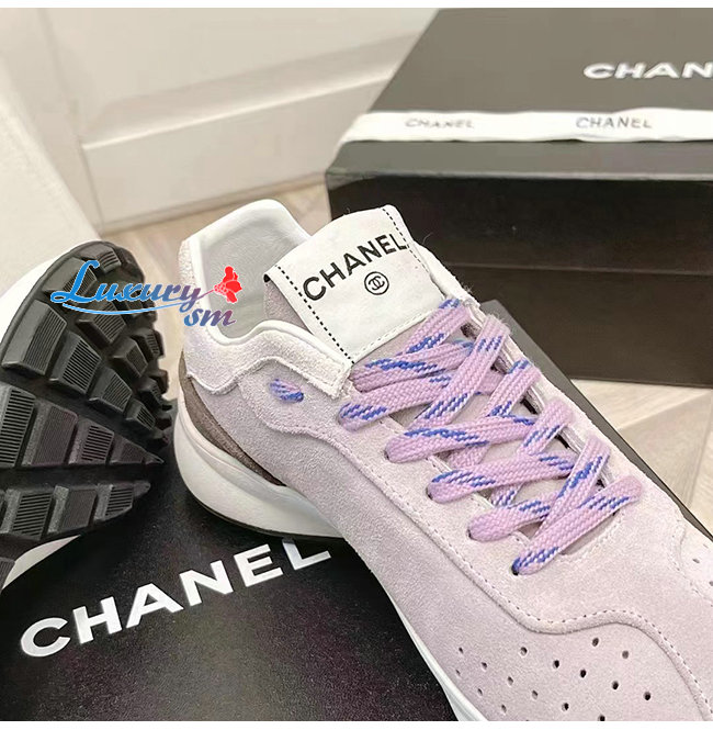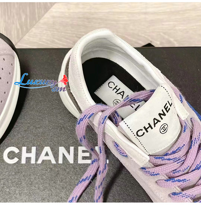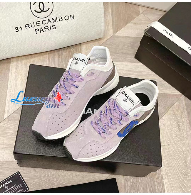 CHANE*-G39074 샤넬 그레이/화이트 스웨이드 키드스킨 스니커즈 여성용