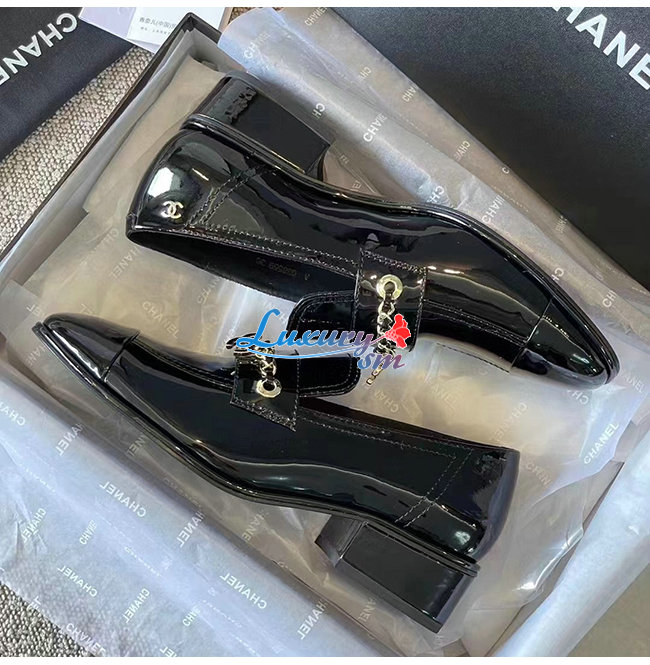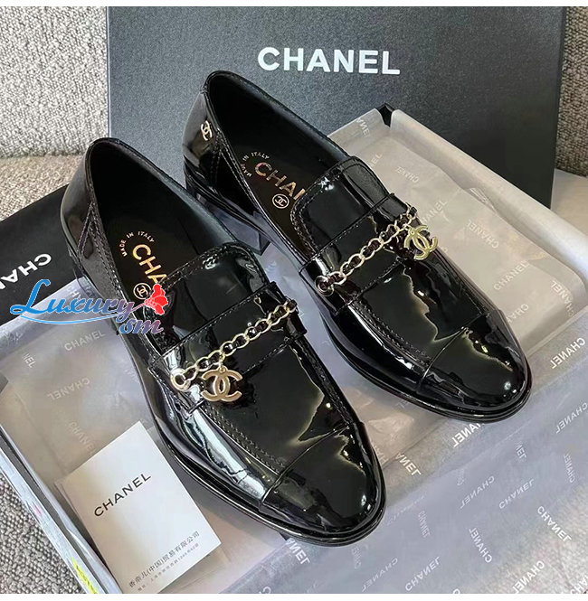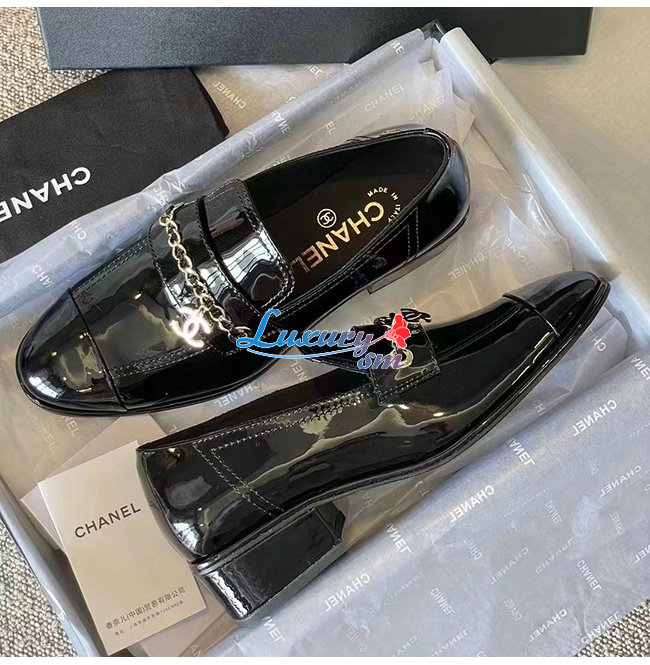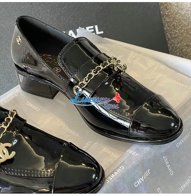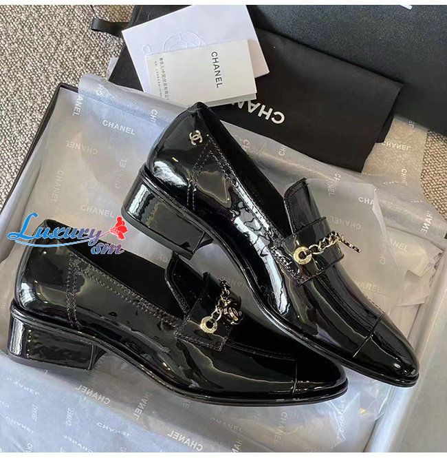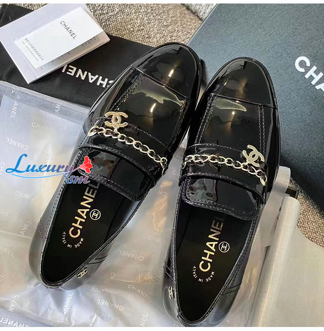 CHANE*-G38559 샤넬 블랙 페이턴트 카프스킨 로퍼 여성용