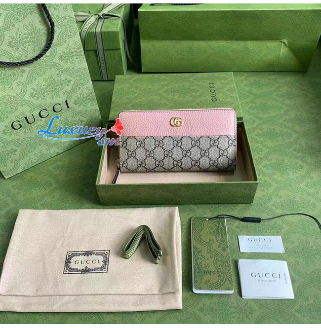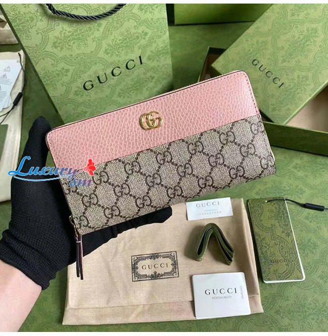 [스페셜오더]GUCC*-456117 5788 구찌 핑크/베이지 GG 마몽 지퍼 지갑