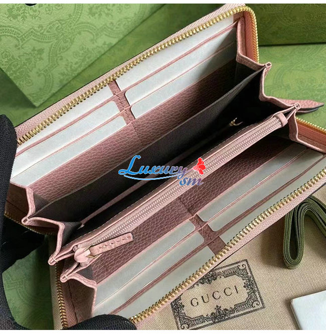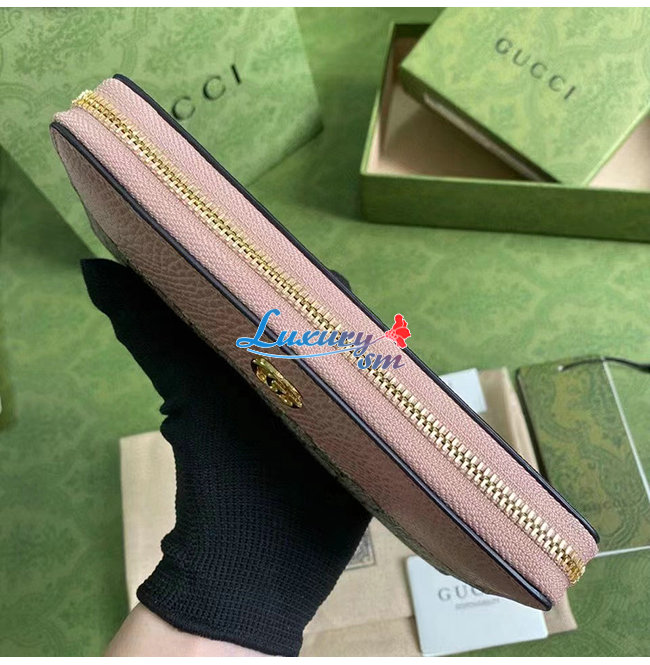 GUCCI-456117 5909 구찌 더블 G 메탈 디테일 라이트 핑크 지퍼 장 지갑