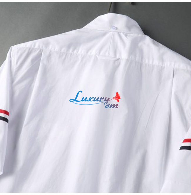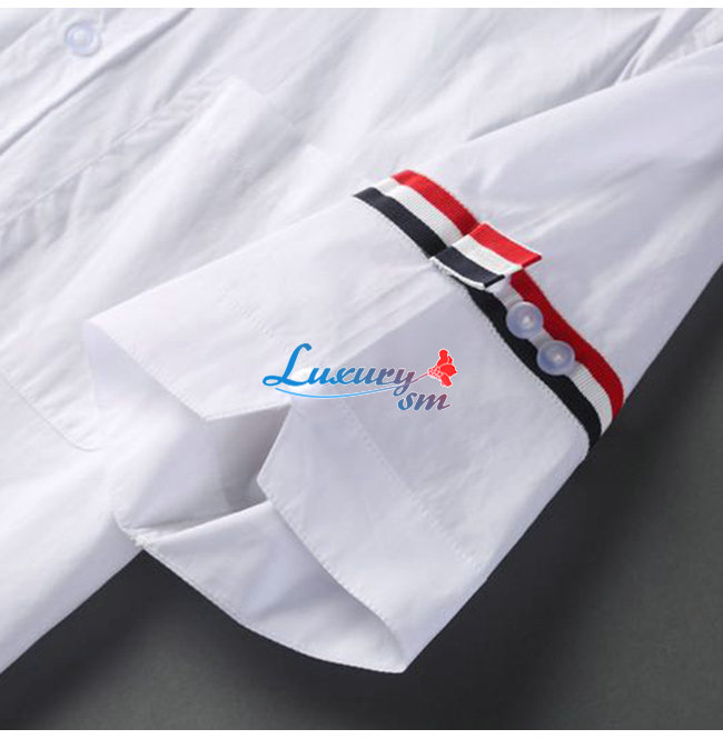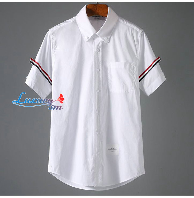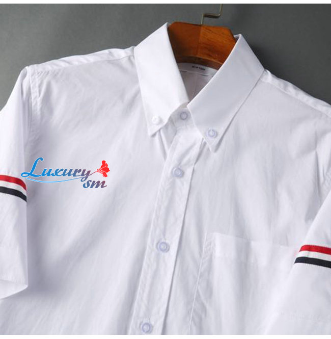 THOM BROW**-05159 톰 브라운 화이트 스트라이프 장식 반팔 셔츠 남여공용