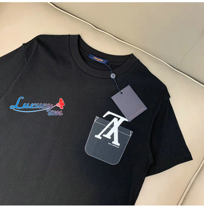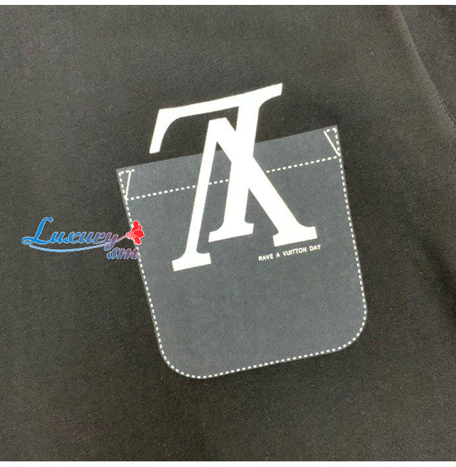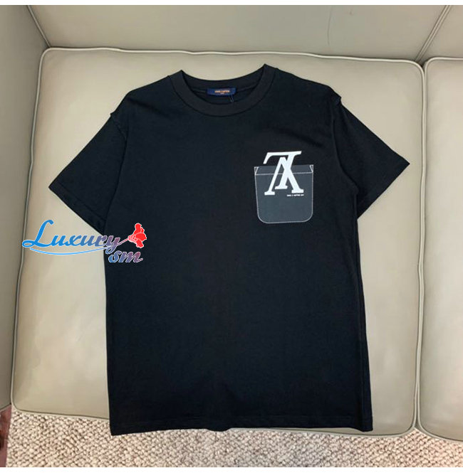 LOUIS VUITTON-05206 루이비통 블랙 LV 시그니처 프린트 장식 티셔츠 남여공용