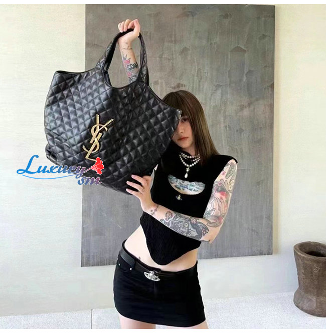 [스페셜오더]SAINT LAURENT-698651 생 로랑 블랙 퀄트 램스킨 ICARE 맥시 쇼퍼백