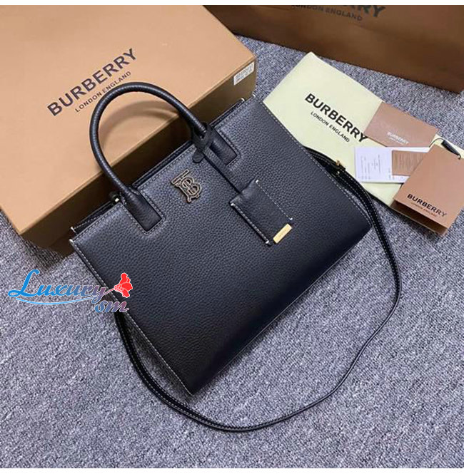 토트 광택 있는 토마스 버버리 모노그램이 돋보이