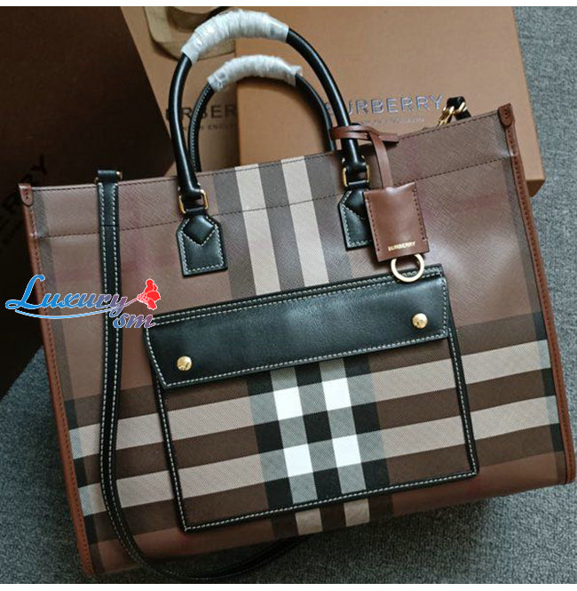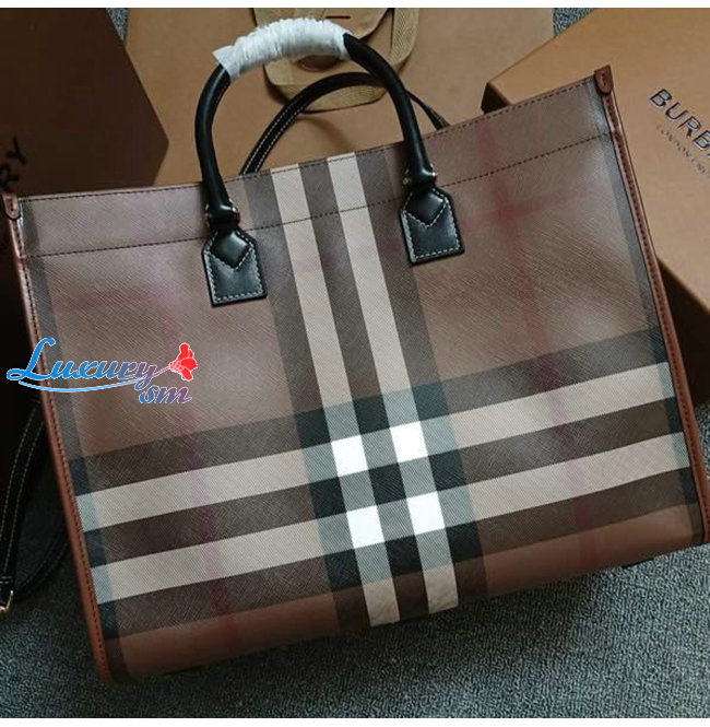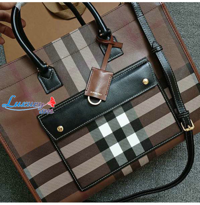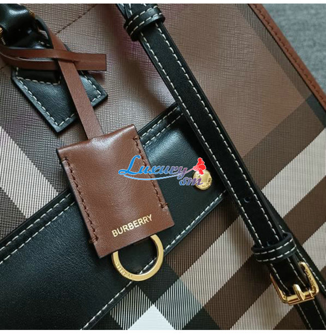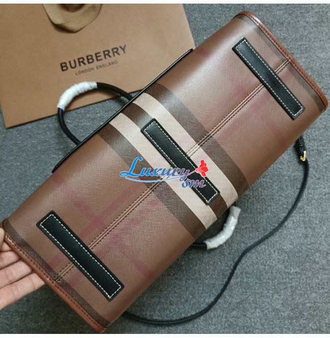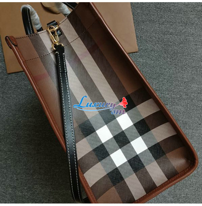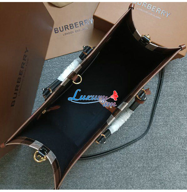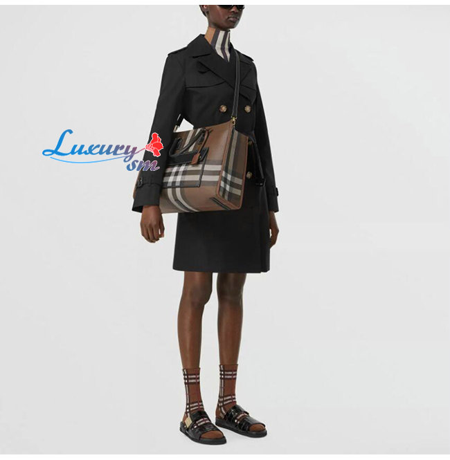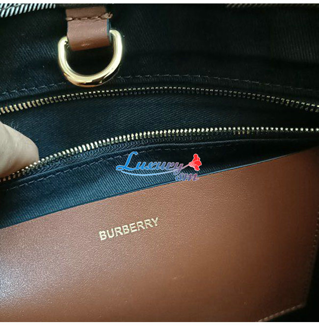 [스페셜오더]BURBERRY-80543091 버버리 브라운 미니 체크 레더 프레야 토트