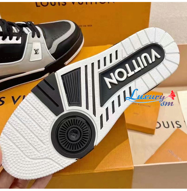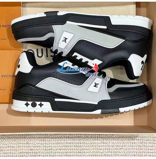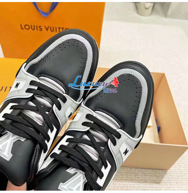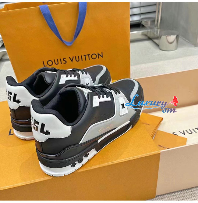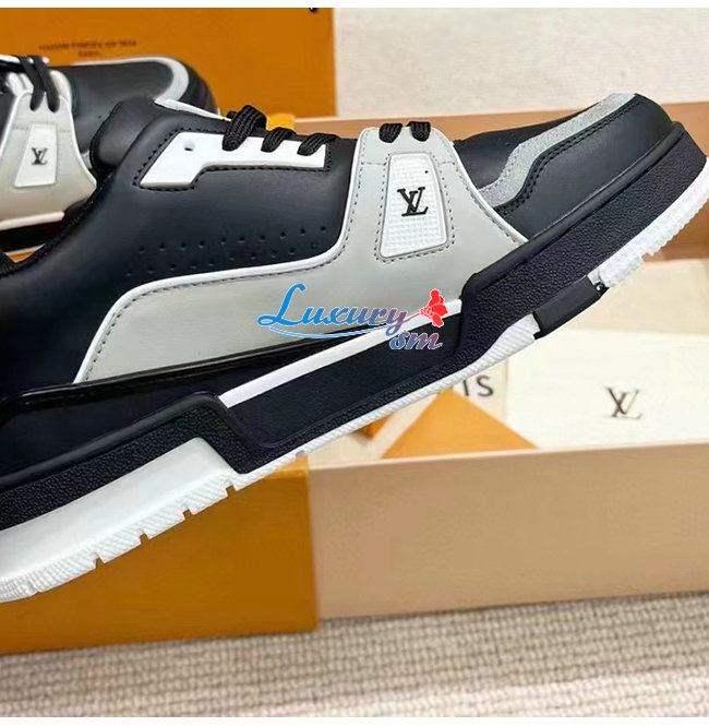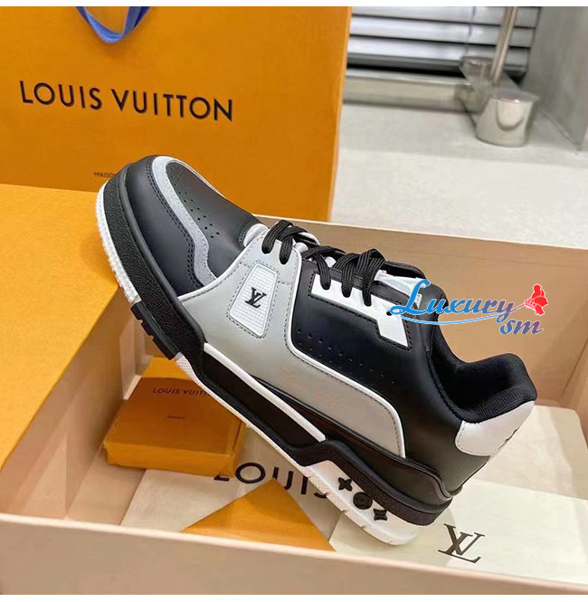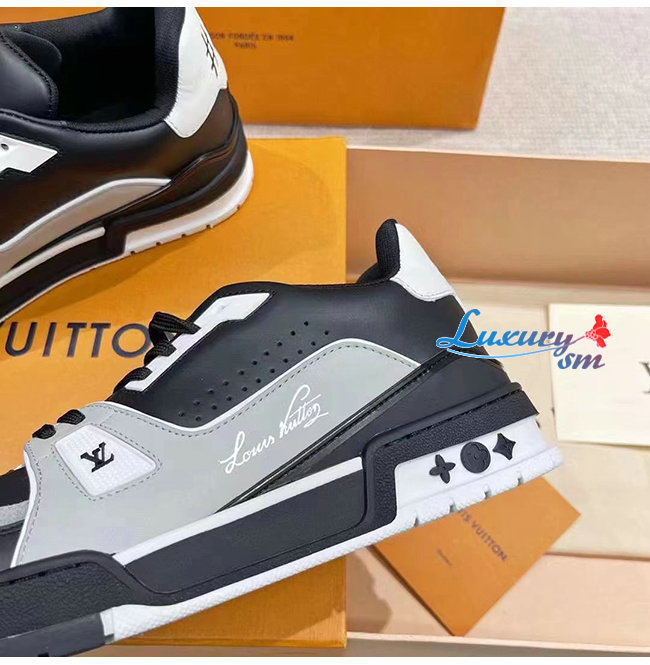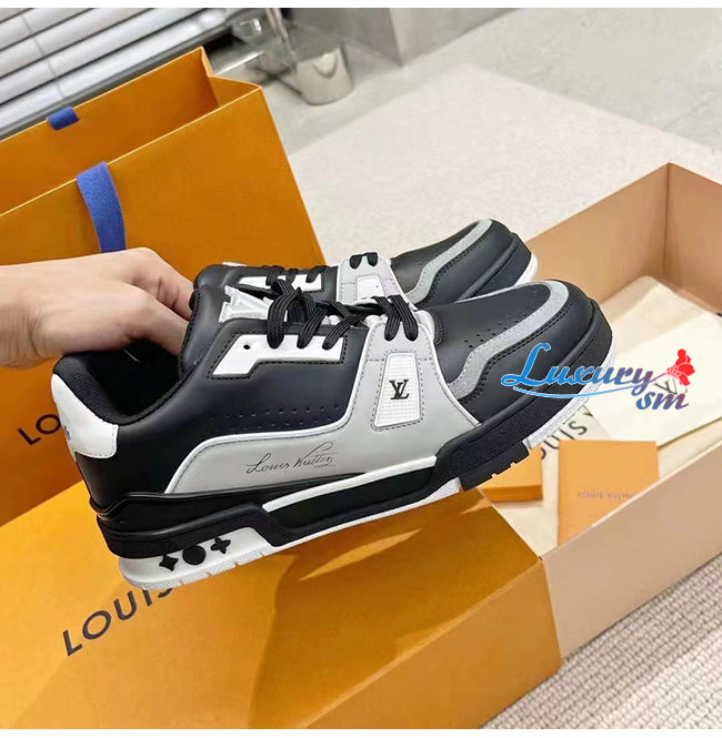 LOUIS VUITTON-1A9ADI 루이비통 블랙/화이트 송아지 가죽 LV 트레이너 스니커즈