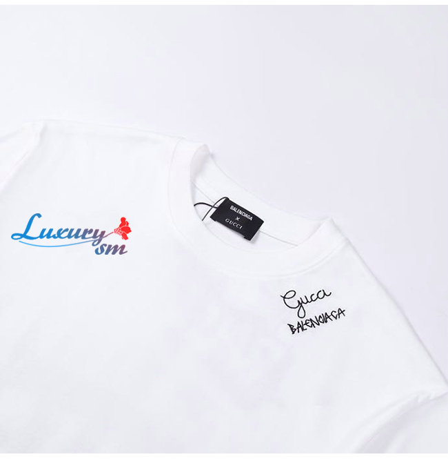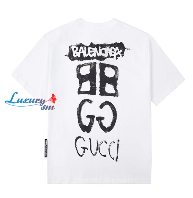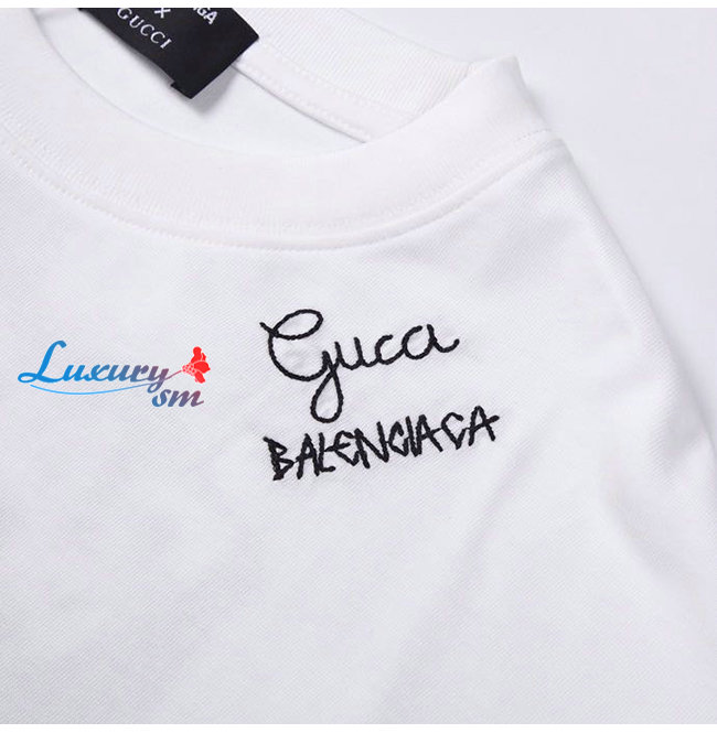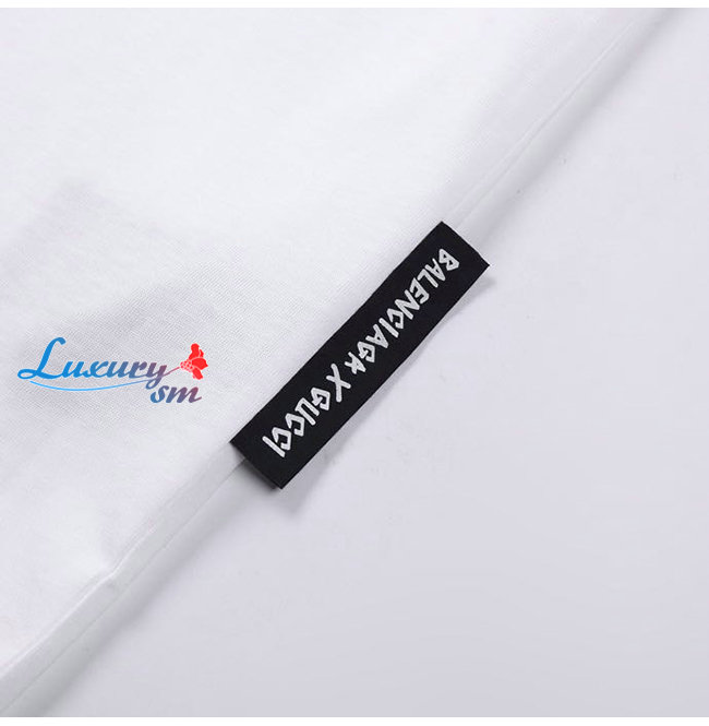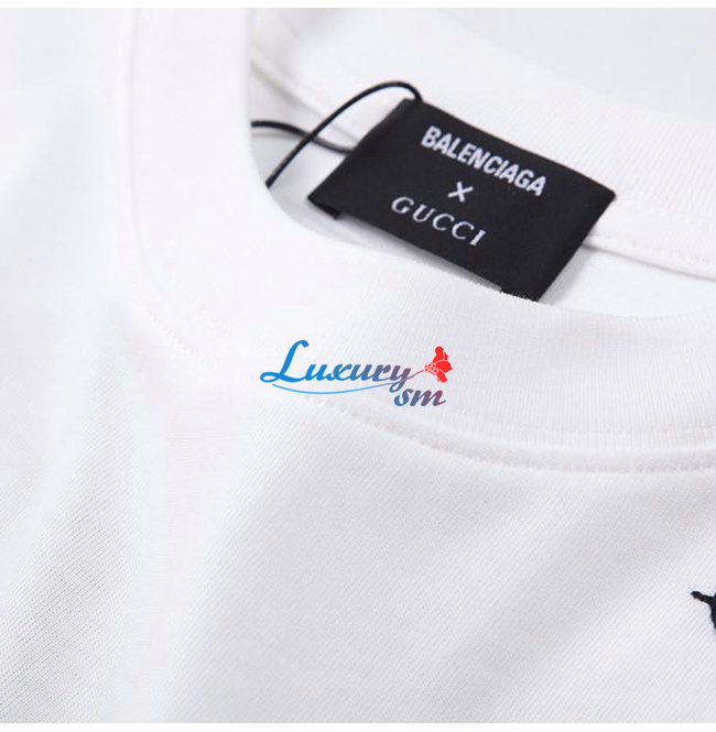 GUCCI-07186 구찌 화이트 구찌 X 발렌시아가 콜라보 프린트 장식 티셔츠 남여공용