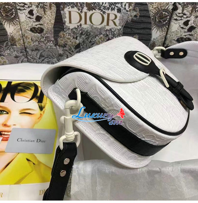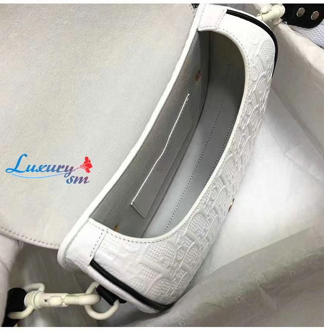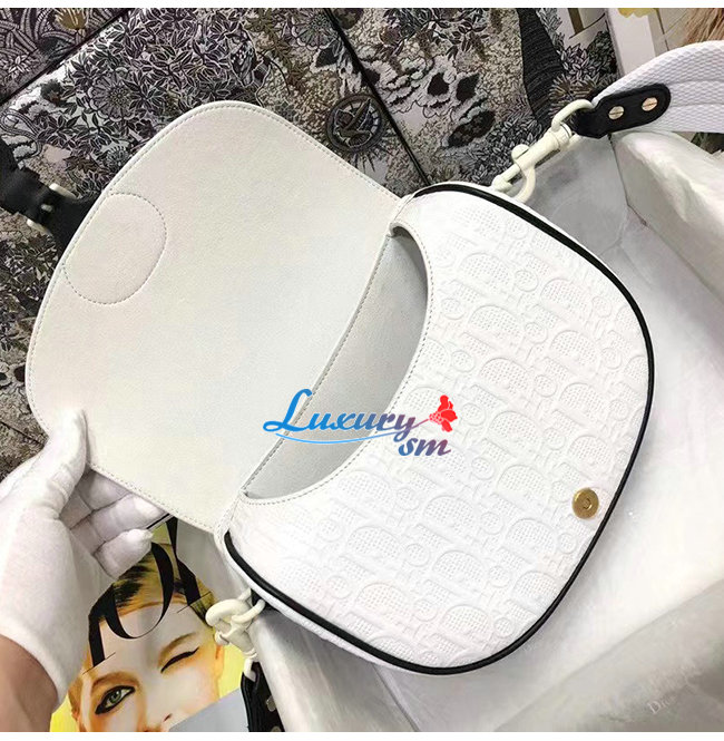 화이트 컬러의 Dior Oblique 펀칭 송아지가죽