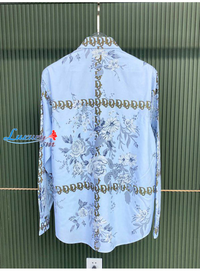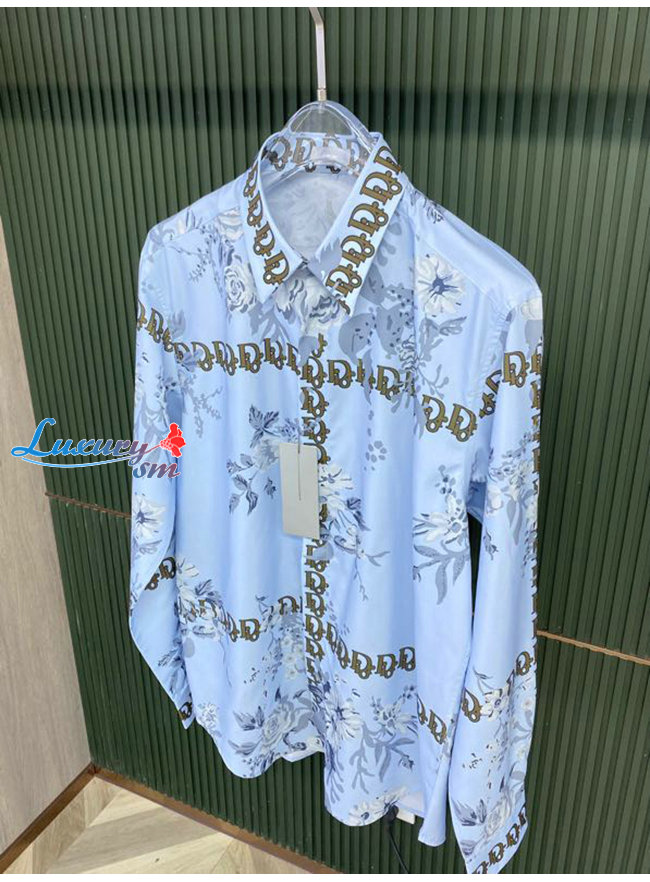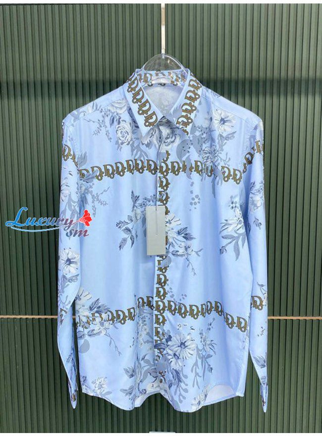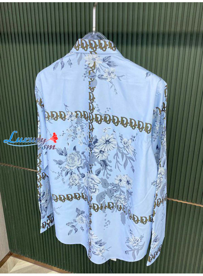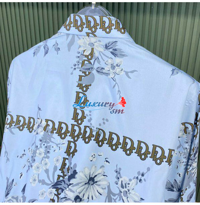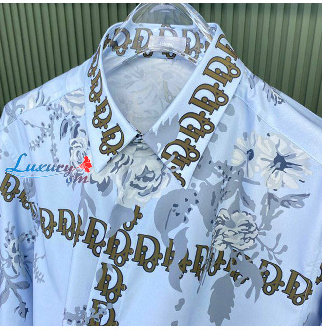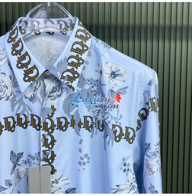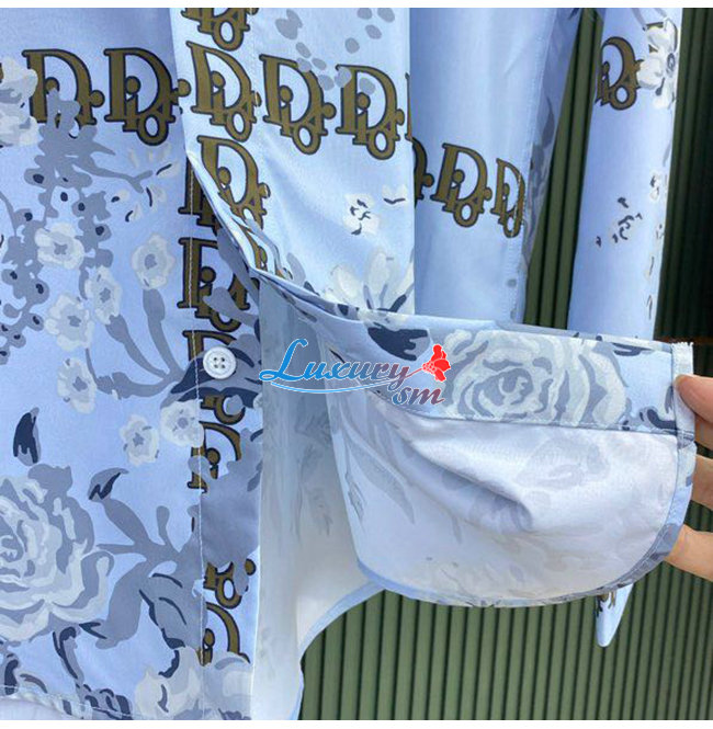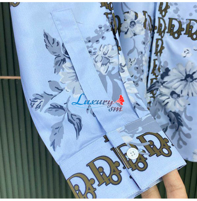 DIOR-08024 디올 라이트 블루 프린트 장식 셔츠 남성용