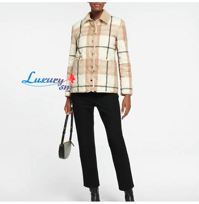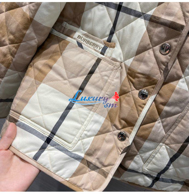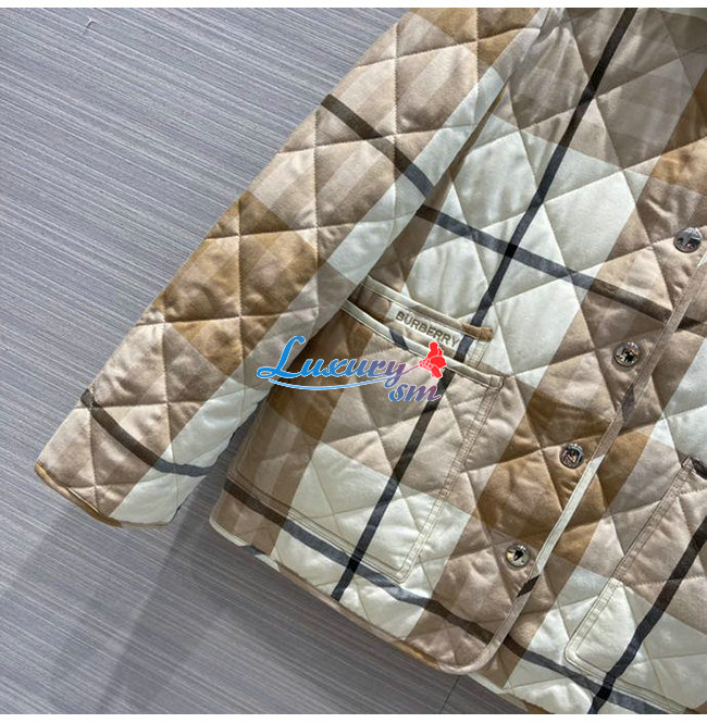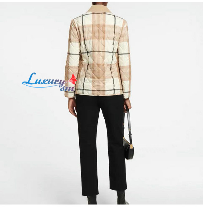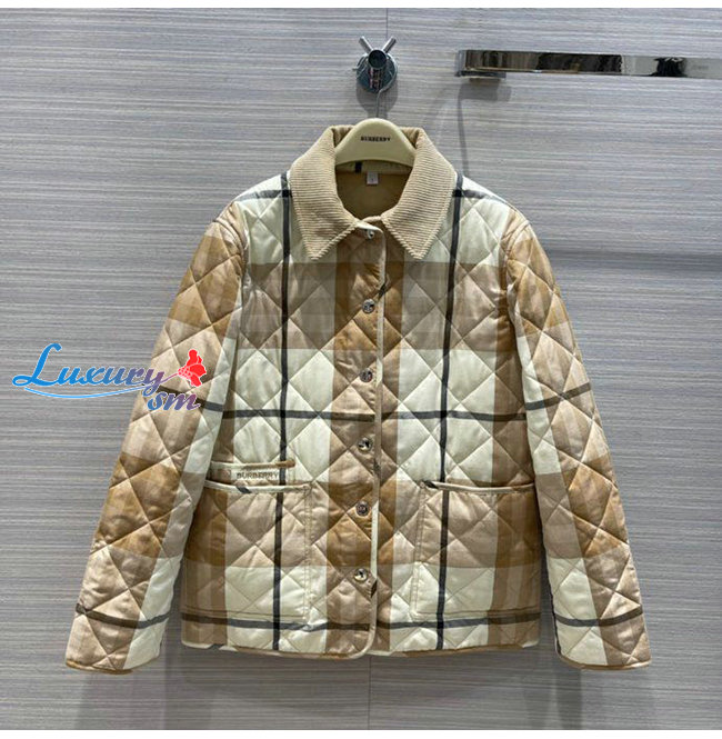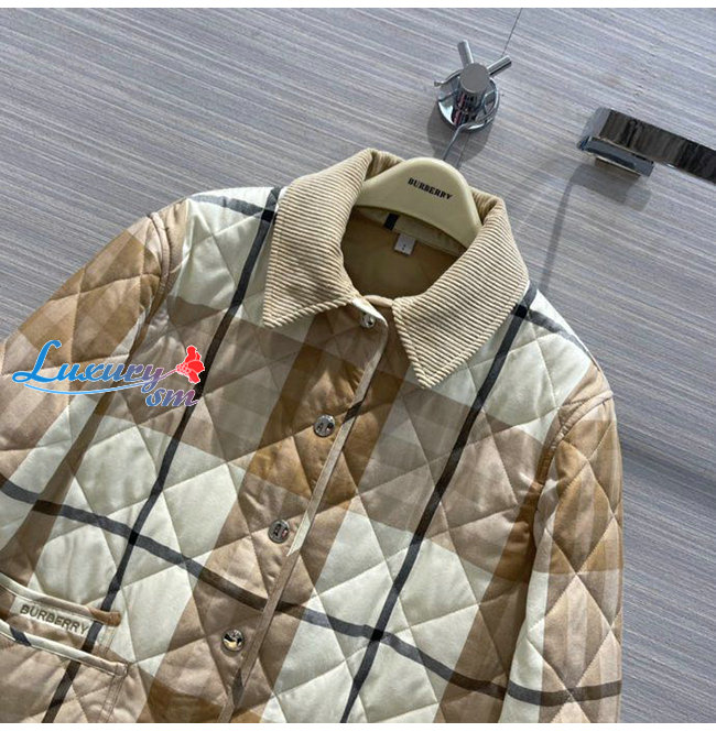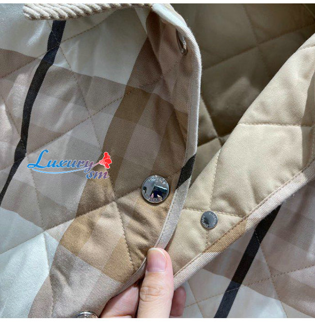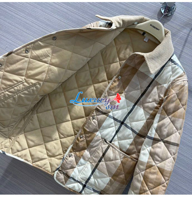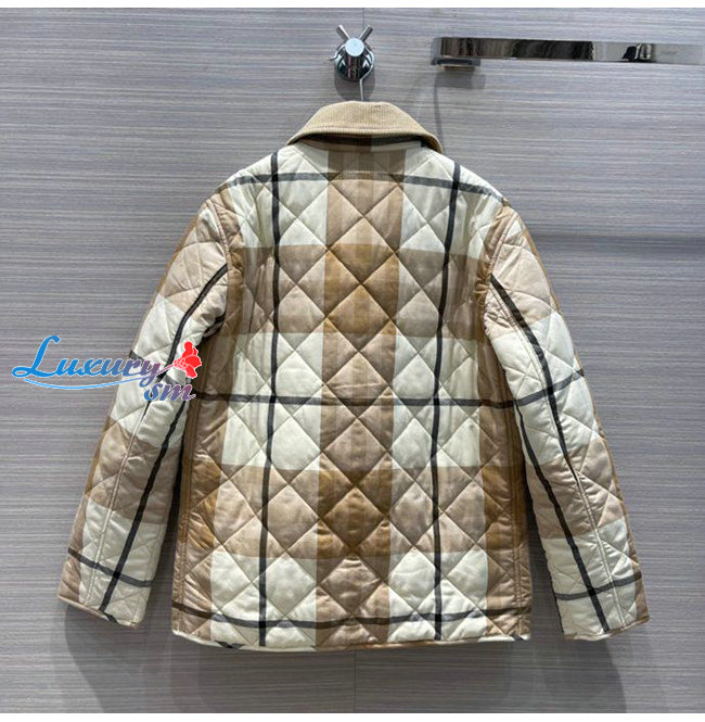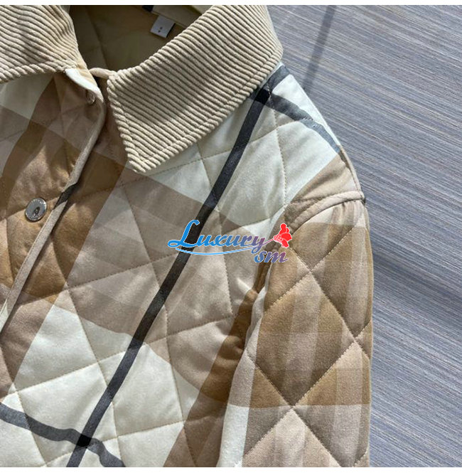 BURBERRY-80554381 버버리 베이지 코듀로이 칼라 다이아몬드 퀼팅 울 반 재킷