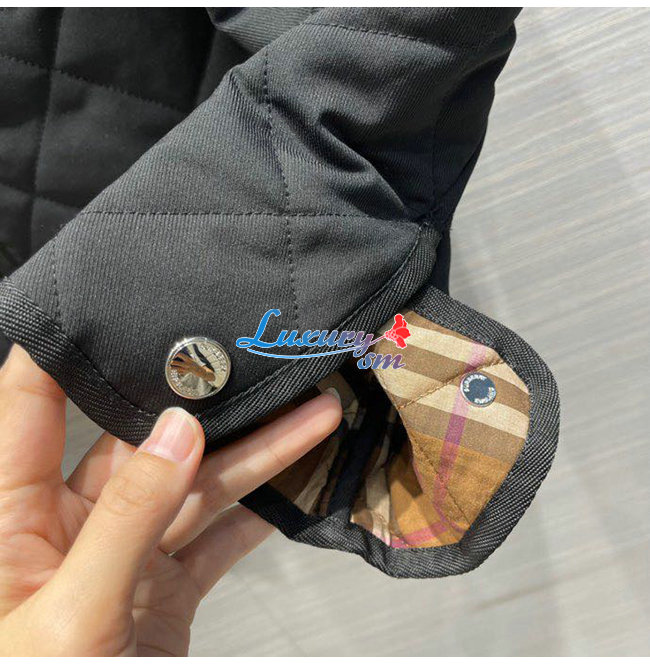 BURBERRY-80551311 버버리 블랙 코듀로이 칼라 다이아몬드 퀼팅 크롭 반 재킷 여성용