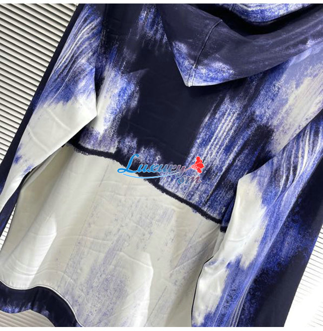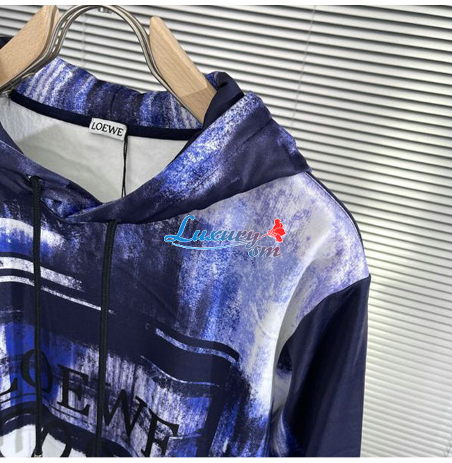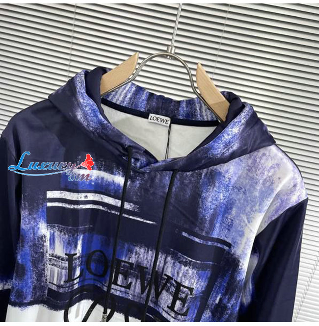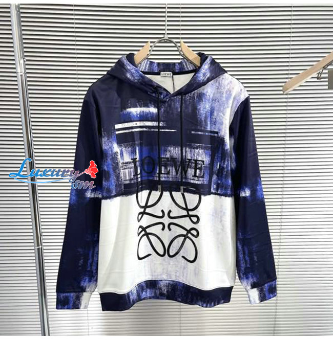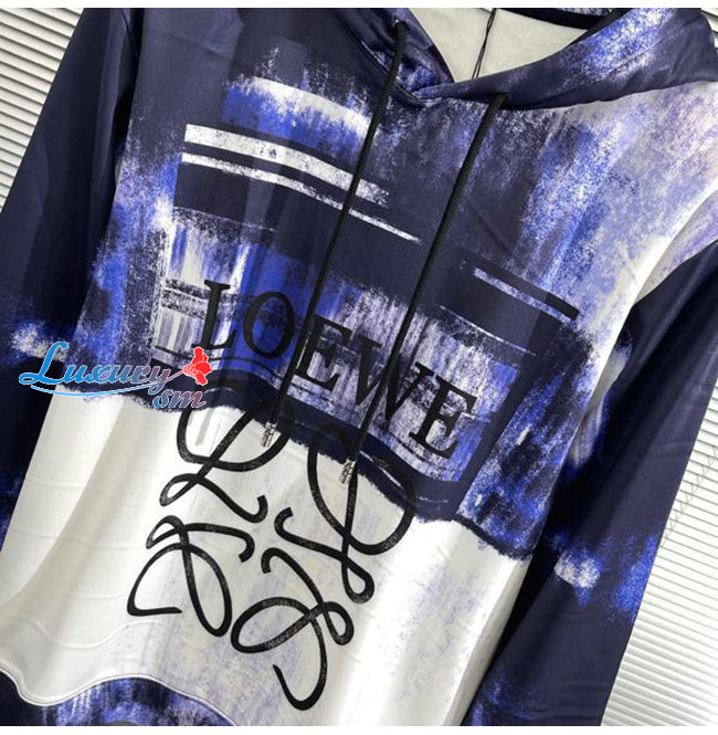 LOEWE-08301 로에베 블루 프린트 장식 후드 티셔츠 남성용