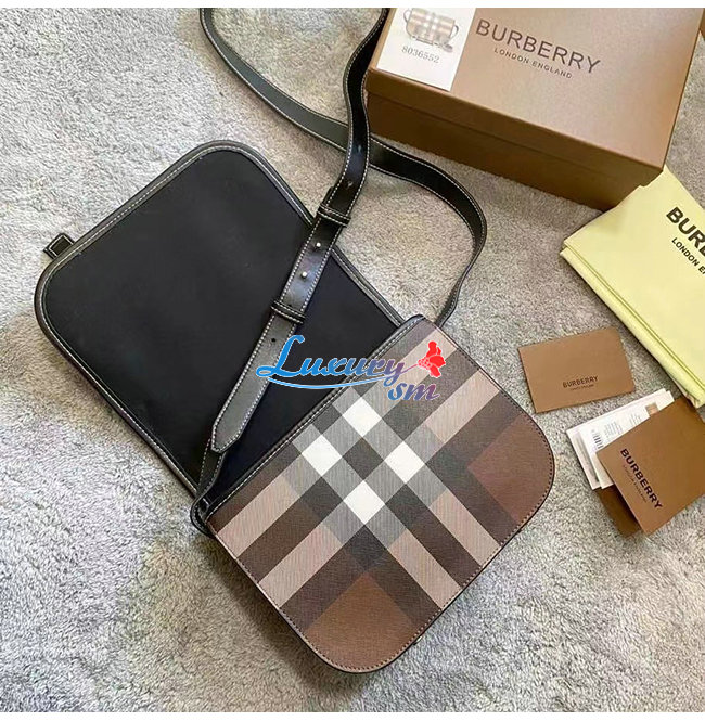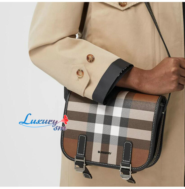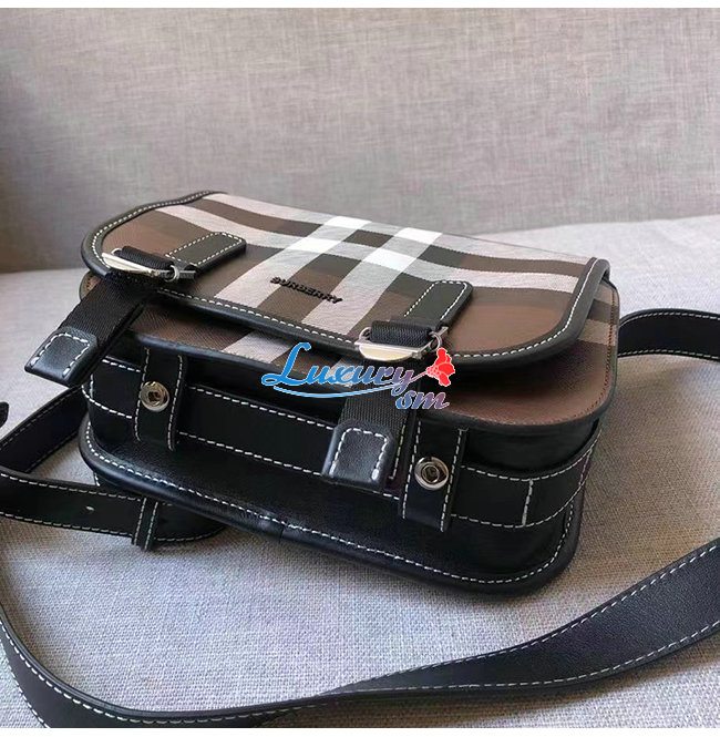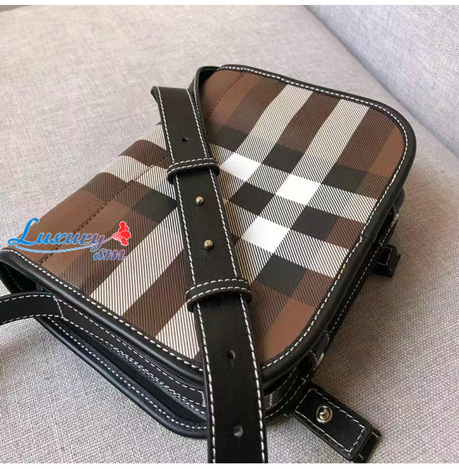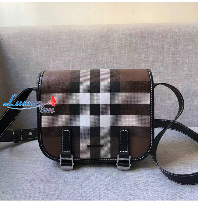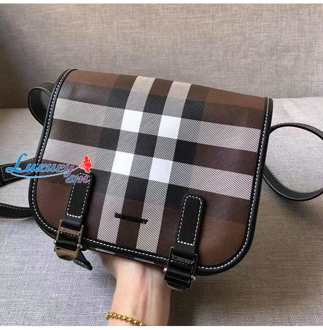 [스페셜오더]BURBERRY-80528041 버버리 브라운 체크 프린트 레더 메신저 백