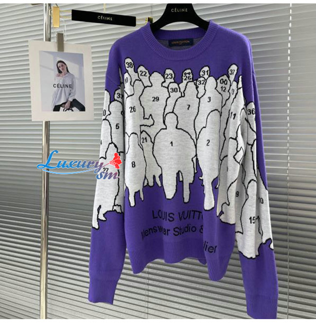 LOUIS VUITTON-1AAHFA 루이비통 퍼플 스튜디오 자카드 크루넥 남여공용
