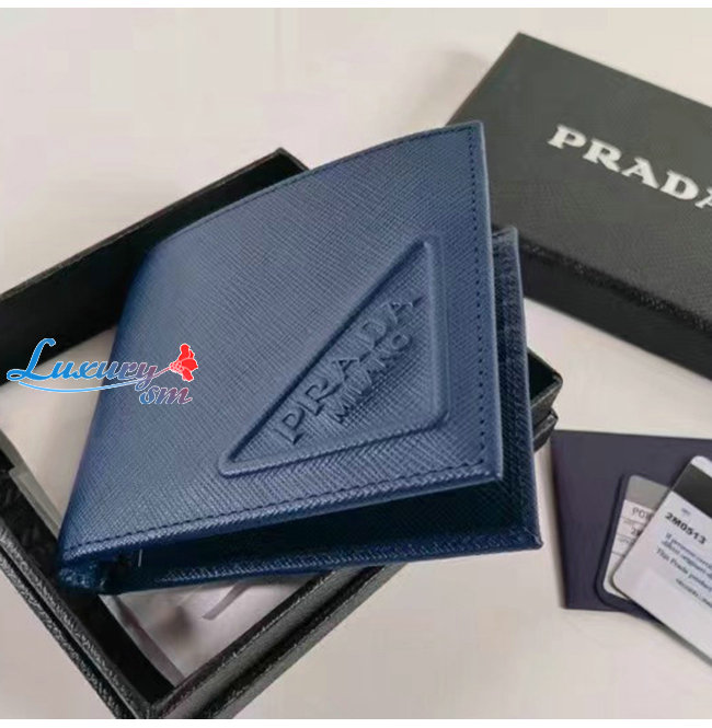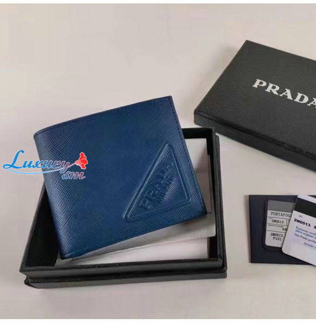 [스페셜오더]PRADA-2MO513 프라다 블루 엠보싱 트라이앵글 로고 지갑