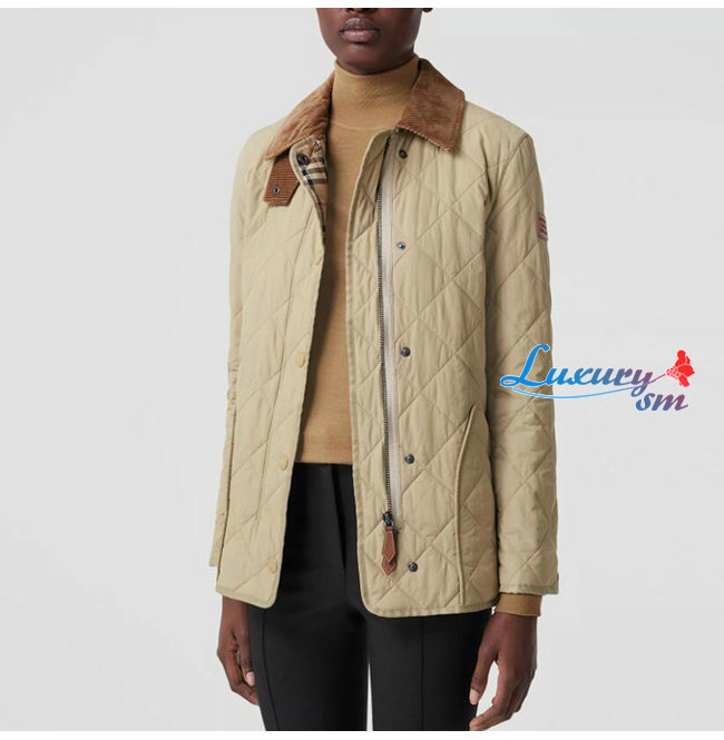 BURBERRY-80214681 버버리 허니 다이아몬드 퀼팅 반 재킷