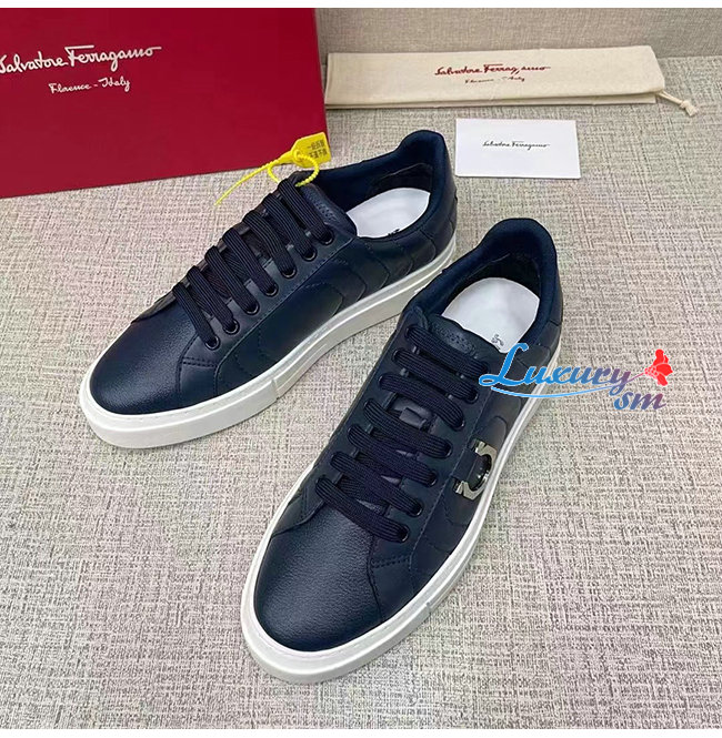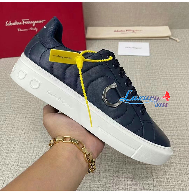 Ferragamo-020776 페라가모 네이비 고트스킨 간치니 스니커즈