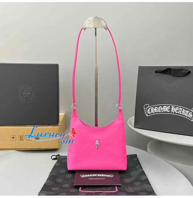 [스페셜오더]CHROMEHEARTS-7911 크롬하츠 핫핑크 카프스킨 메탈 장식 호보백