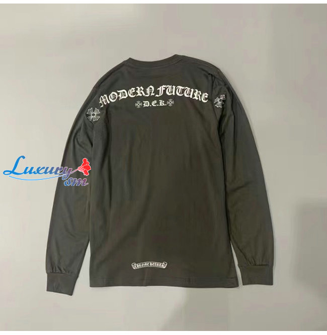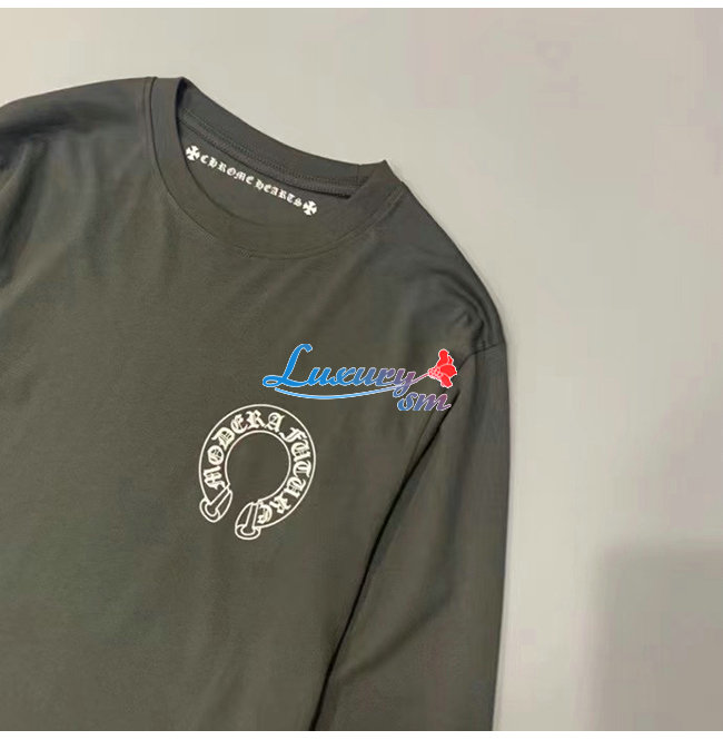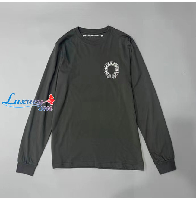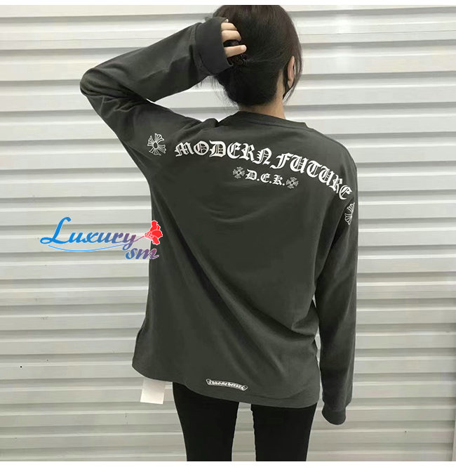 CHROMEHEARTS-09112 크롬하츠 그레이 프린트 장식 긴팔 티셔츠 남여공용