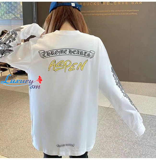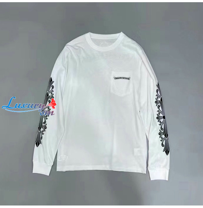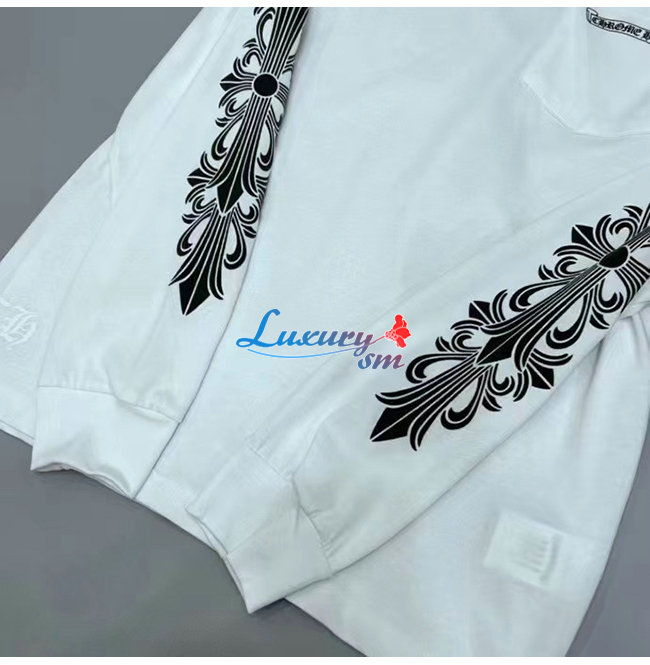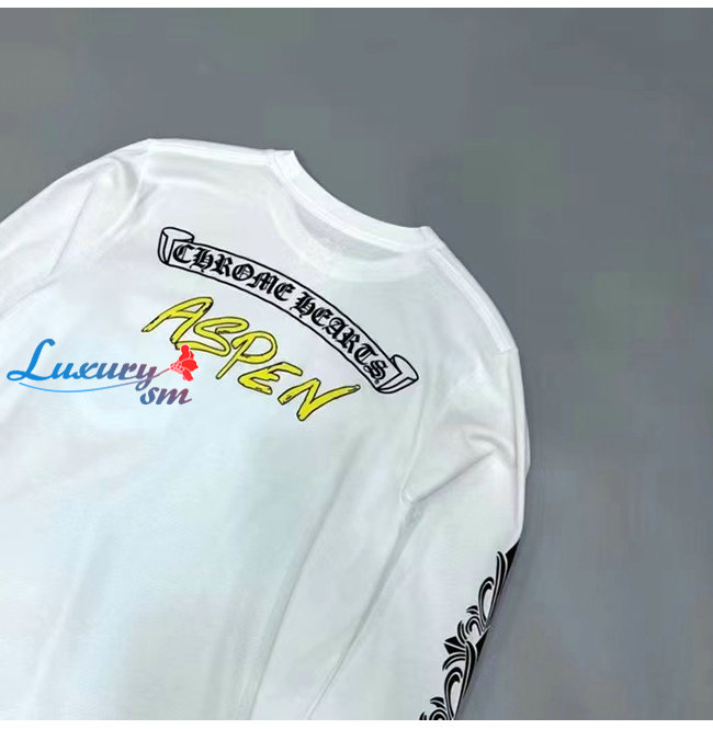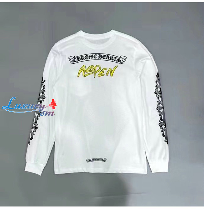 CHROMEHEARTS-09113 크롬하츠 화이트 프린트 장식 긴팔 티셔츠 남여공용