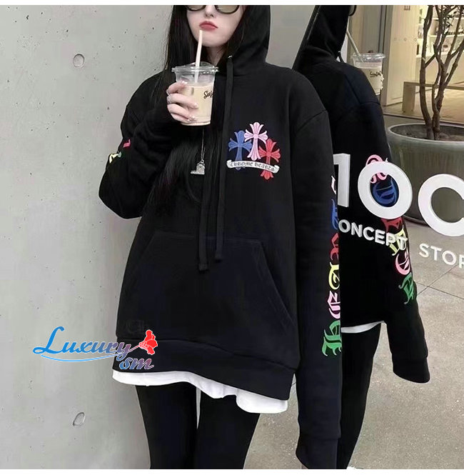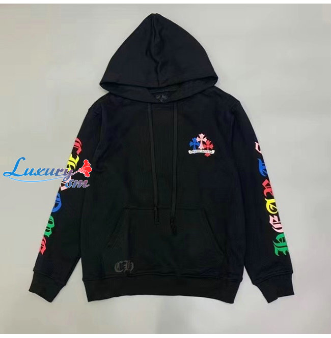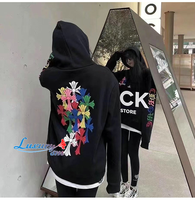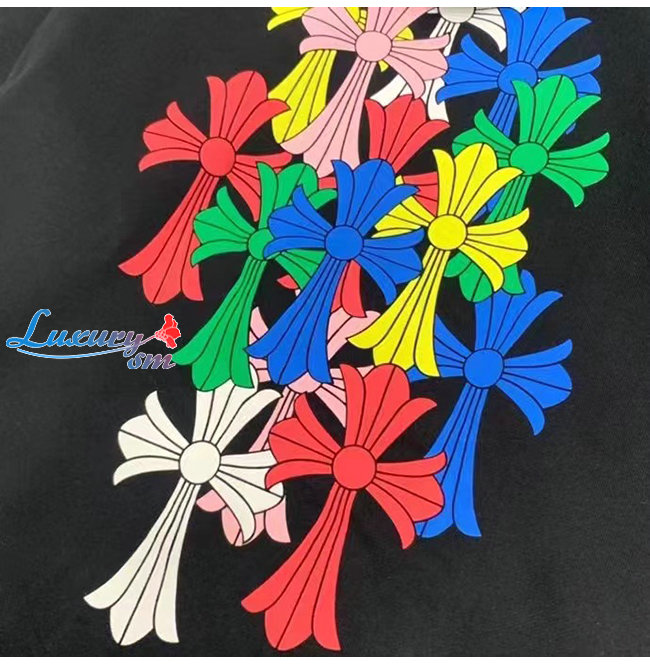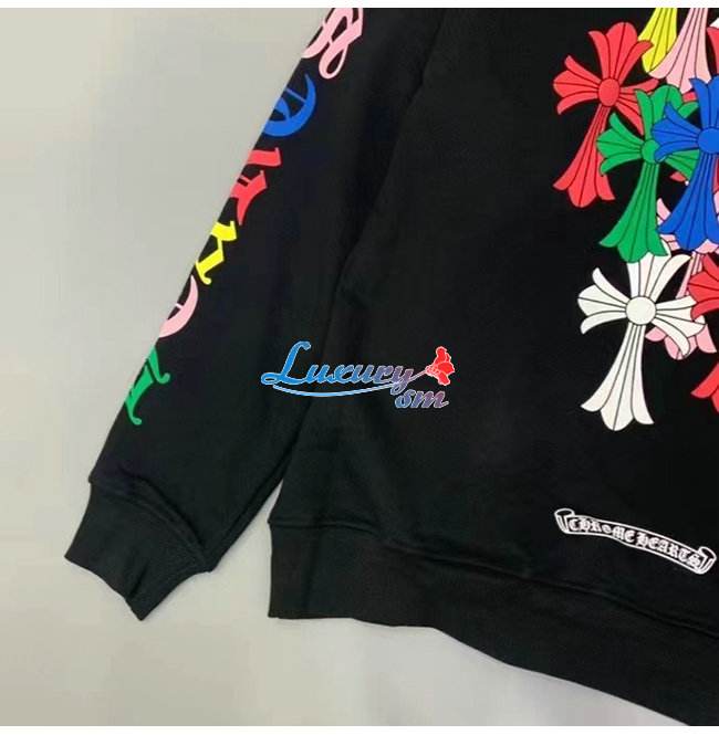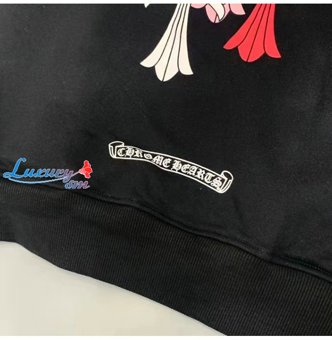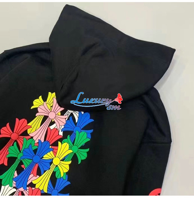 CHROMEHEARTS-091111 크롬하츠 블랙 프린트 장식 후드 티셔츠 남여공용