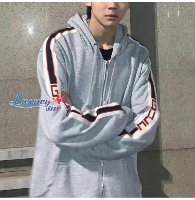 GUCCI-091316 구찌 그레이 스트라이프 장식 후드 재킷 남여공용