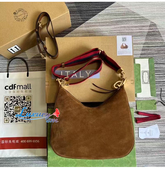 [스페셜오더]GUCCI-702823 2664 구찌 브라운 스웨이드 구찌 아따슈 라지 숄더백