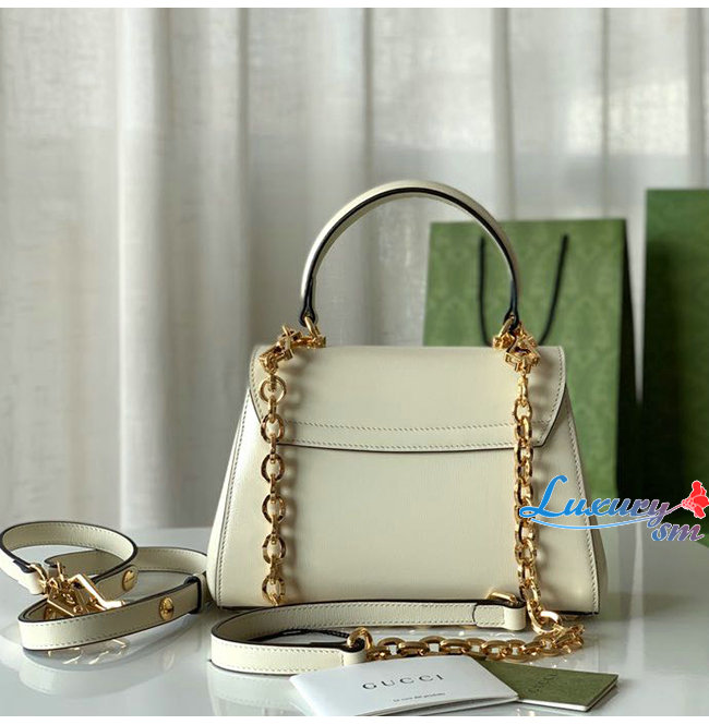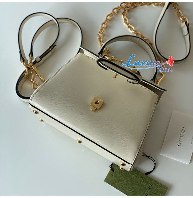 탑 핸들백으로 선보이는 화이트 레더 소재 구찌