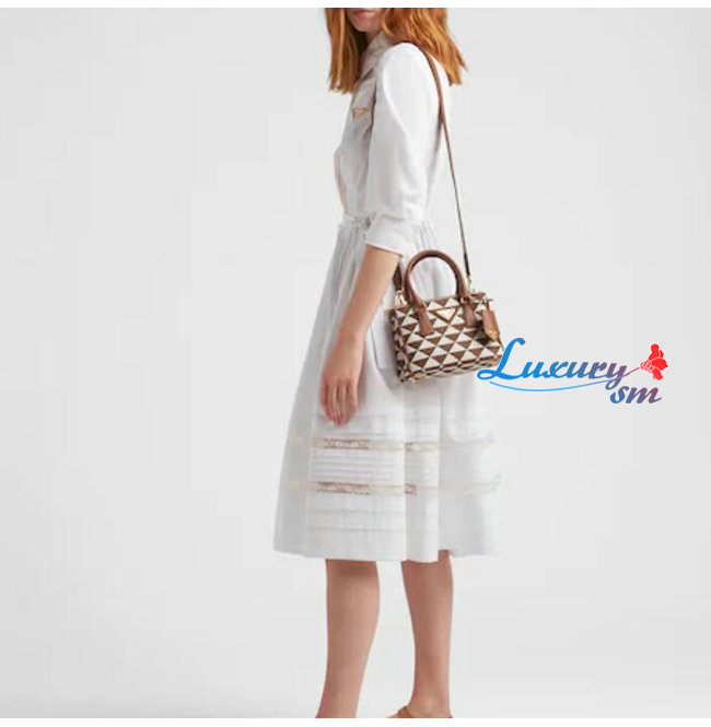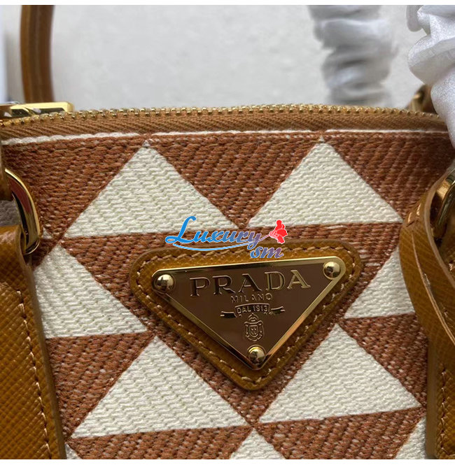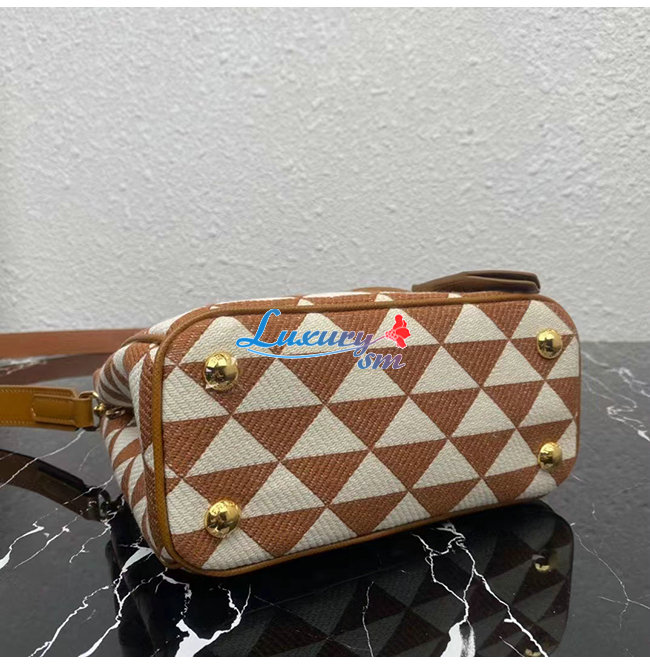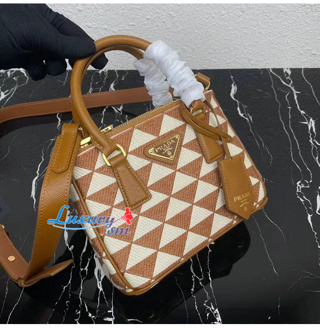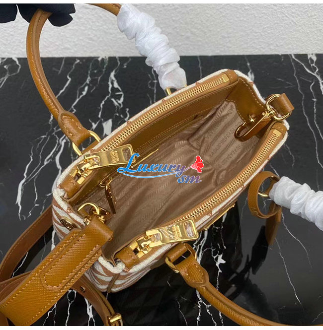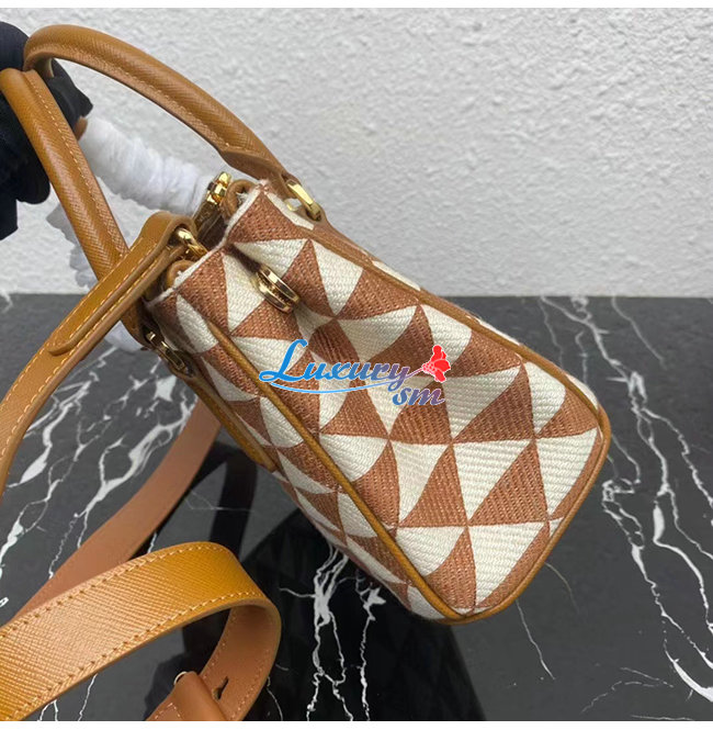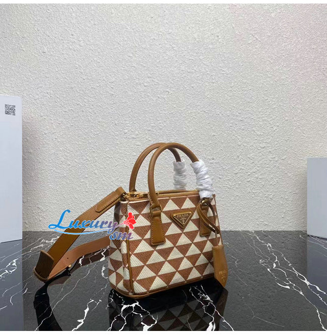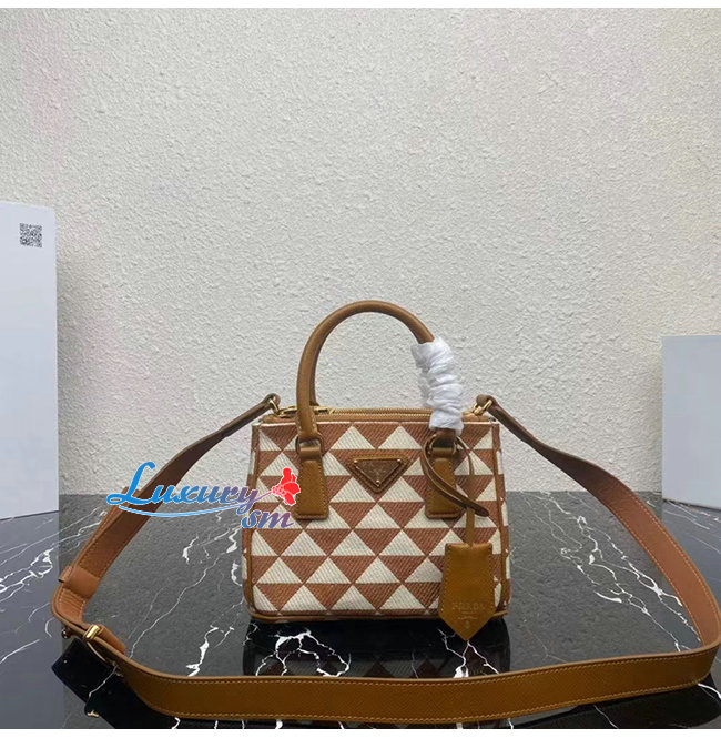 [스페셜오더]PRADA-1BA906 프라다 브라운 자수 패브릭 마이크로 갤러리아 탑 핸들백