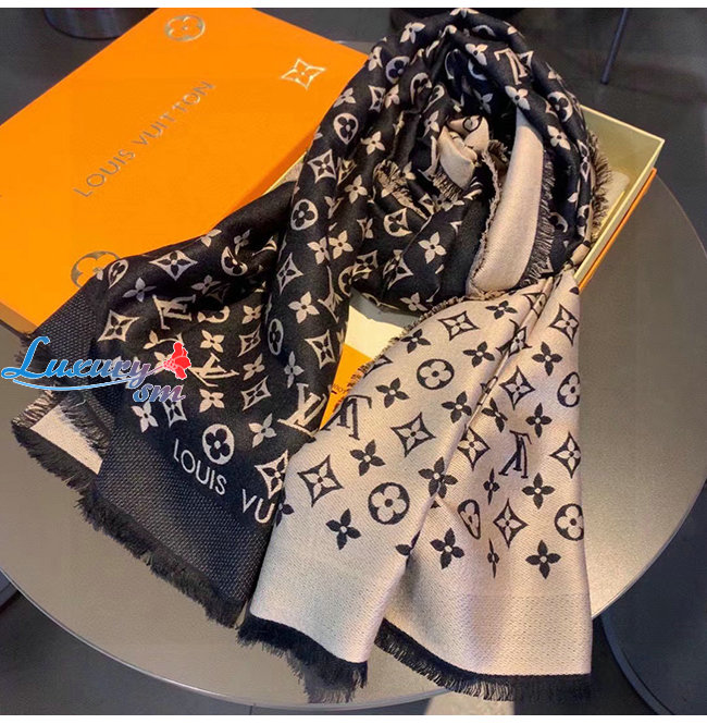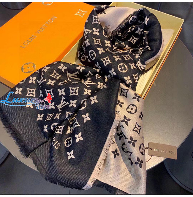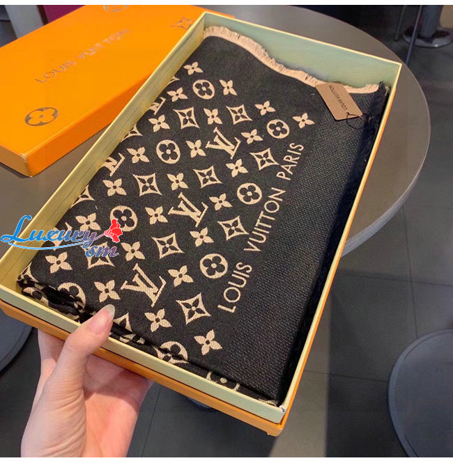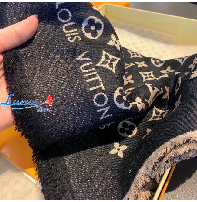 LOUIS VUITTON-10183 루이비통 블랙 모노그램 플라워 스카프