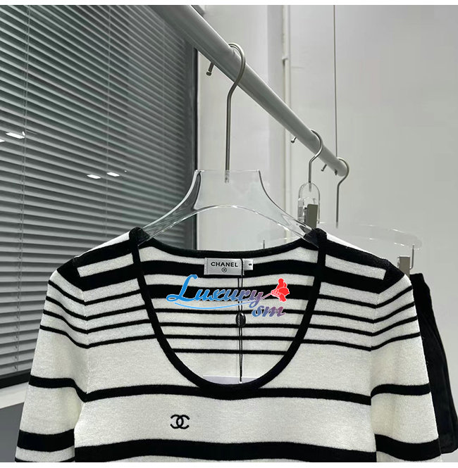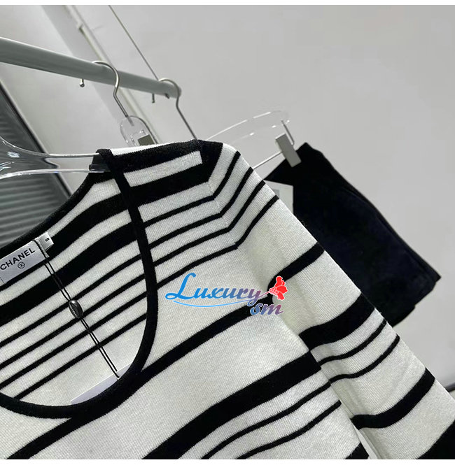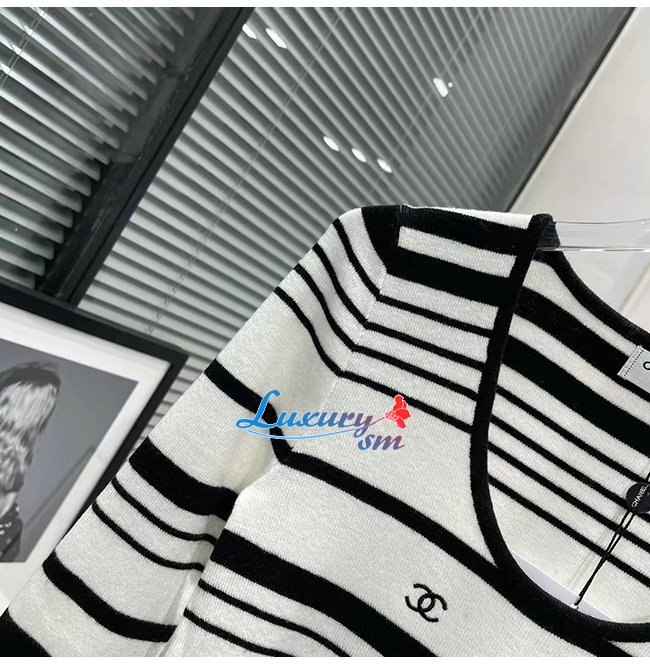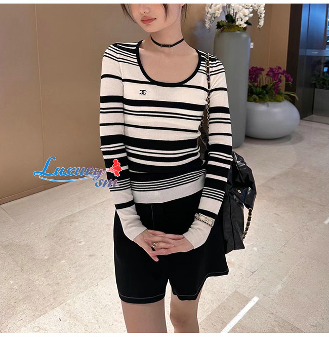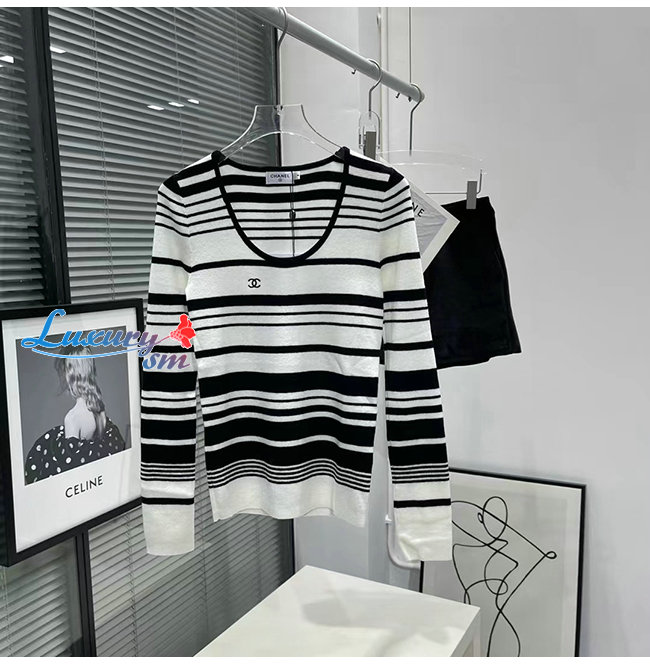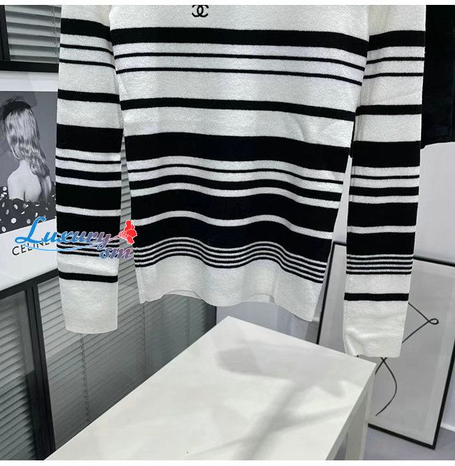 CHANEL-101910 샤넬 블랙/화이트 스트라이프 스웨터 여성용