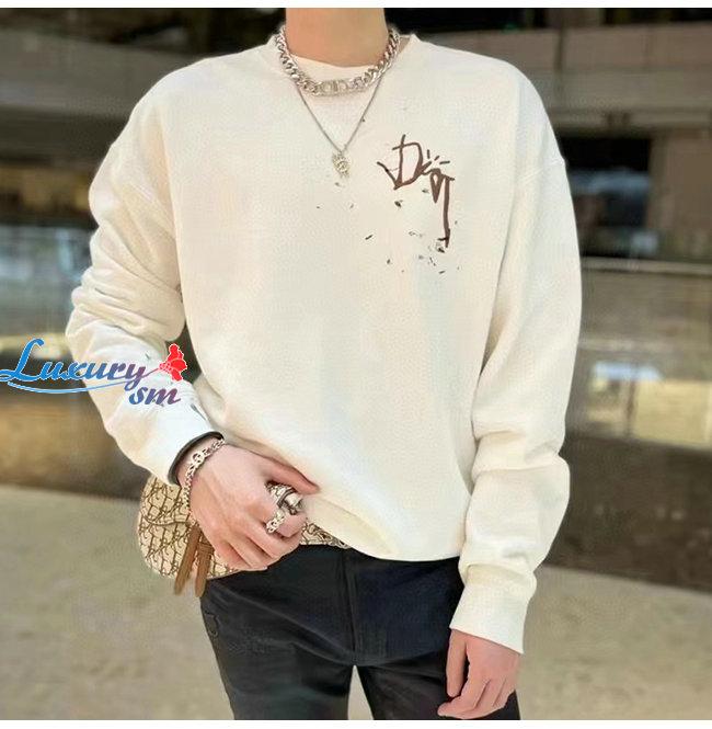 DIOR-10225 디올 화이트 프린트 장식 스웨트셔츠 남성용
