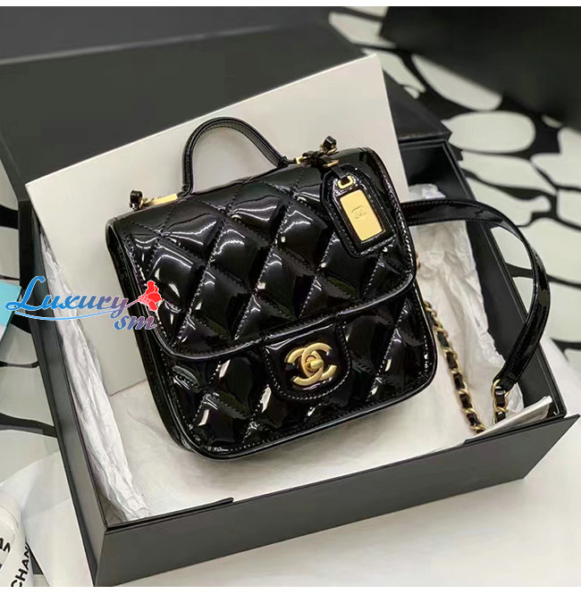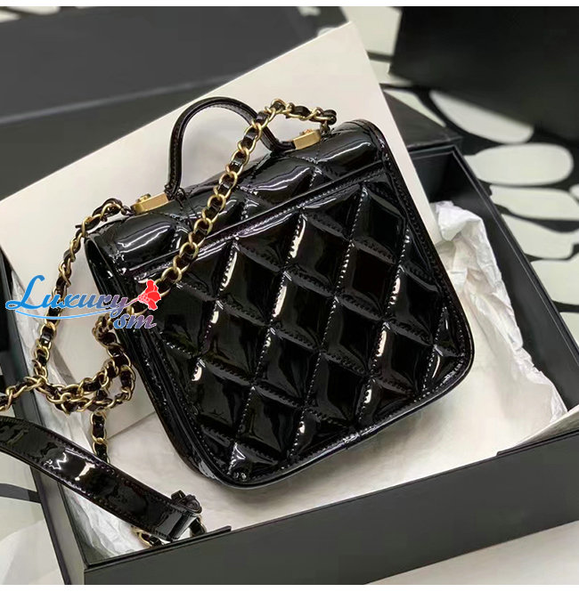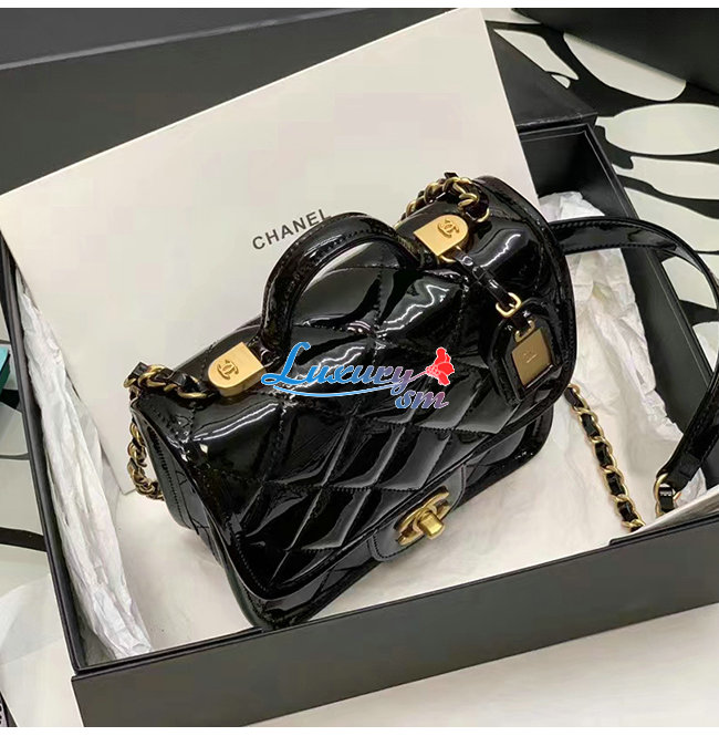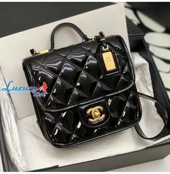 [스페셜오더]CHANEL-AS3652 샤넬 블랙 페이턴트 카프스킨 핸들 장식 스몰 플랩 백